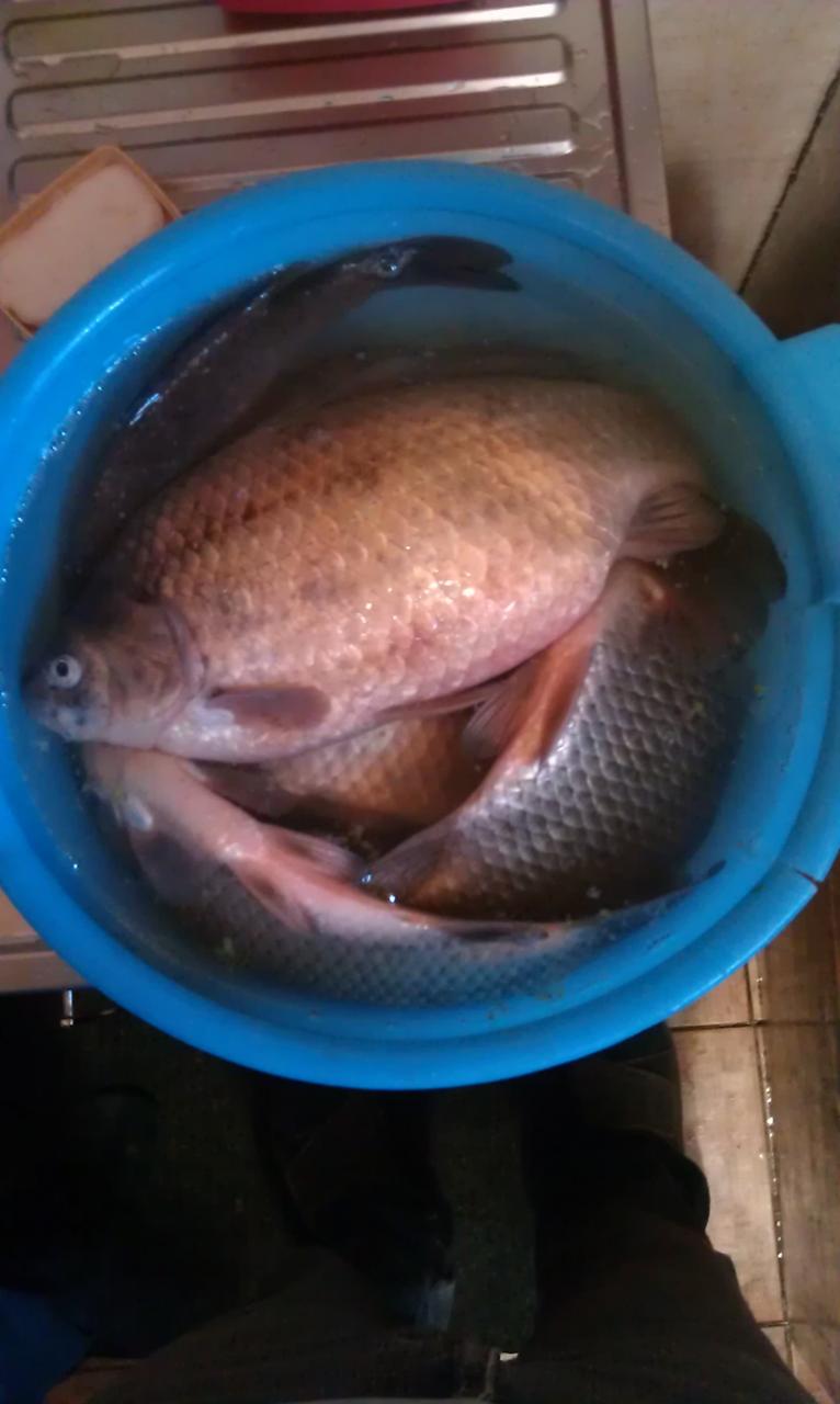 Короче за пару часов с редкими поклёвками мы всё же выловили по десятку карасевичей,самый маленький и которых был с мою ладошку.Вот такой результат у меня: