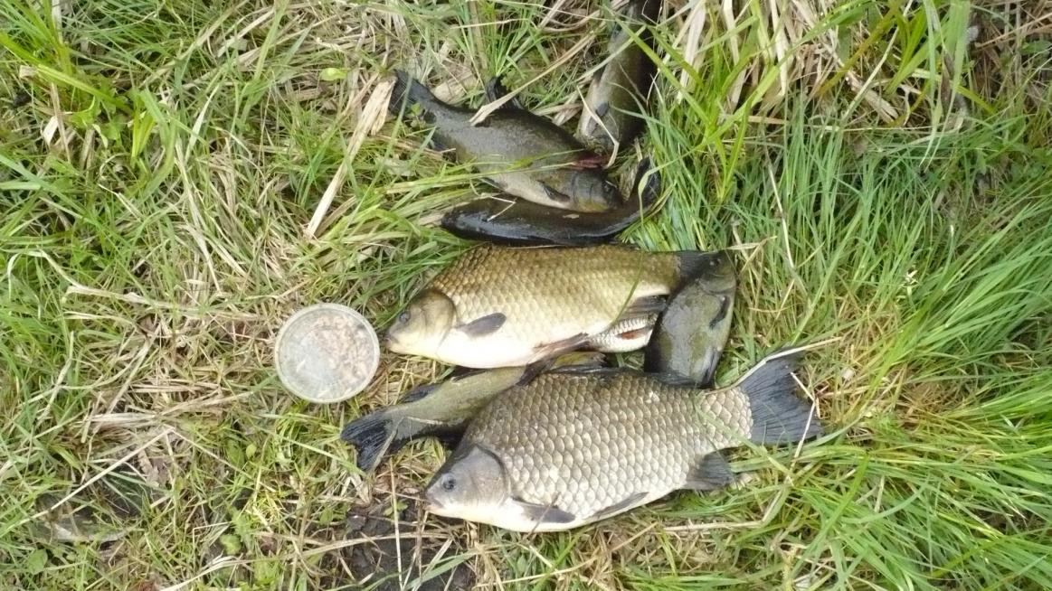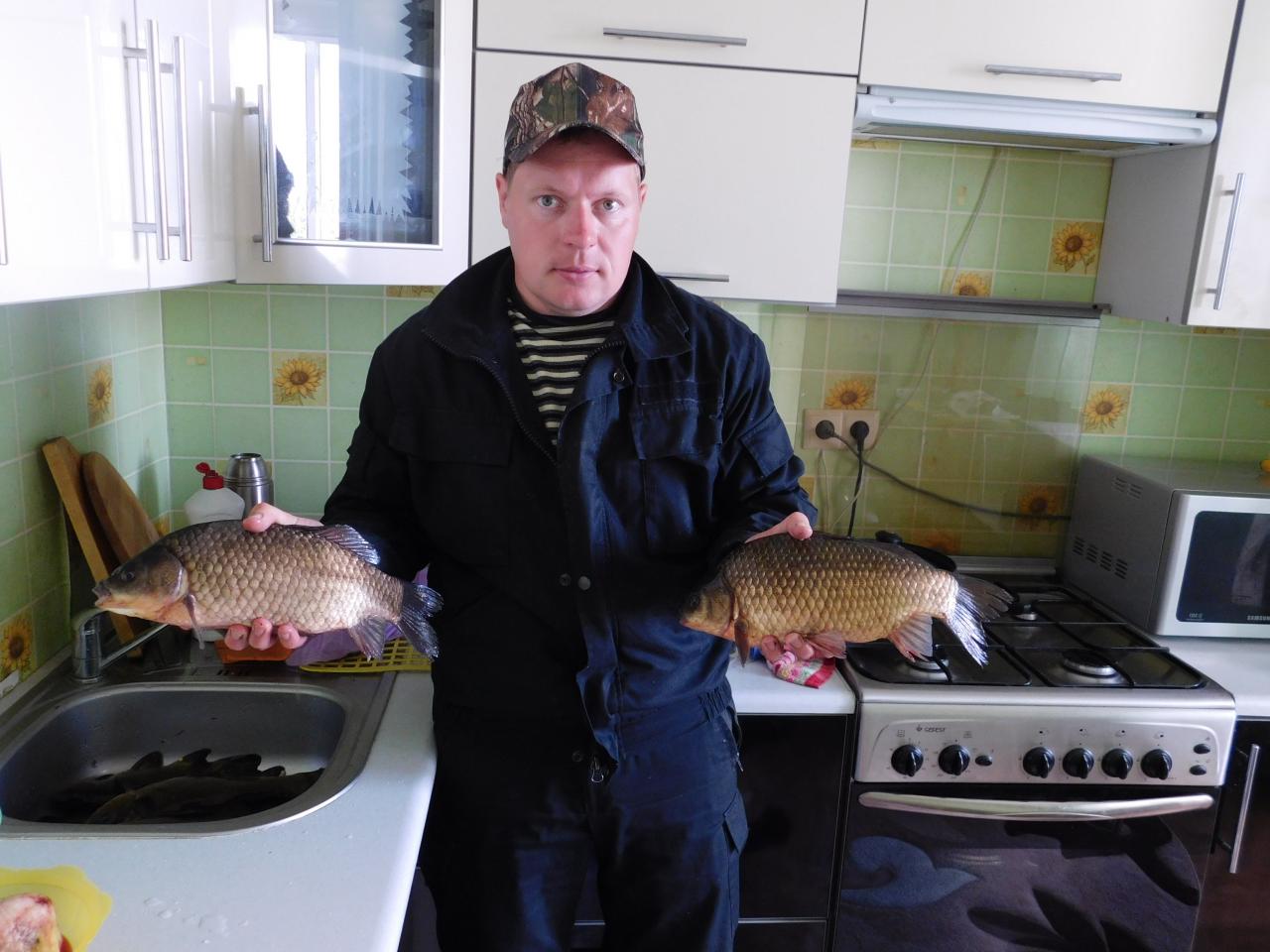 Сегодня прошвырнулись проверить как поживает его величество КАРАСЬ. Поживает, но неактивный и измельчал. Проверяли с 5 до 12, ловил на фидер. В качестве насадки сало, на него всех и цапнул, после 10 поклевки прекратились, в 12 решено скручиваться и домой. Кроме реализованных было еще за период ловли 4 поклевки, 2 холостых и 2 схода, один неплохой. У народа также кисло. С количеством снастей и крючков на них не заморачивается большинство вообще никак, причем не то что пару штук всунуто, а по 3-5 и на каждой крючка по 4, до лампочки, грустноватенько. Хотя толку от этого никакого, сидят курят, грустные, без смайликов. Также поскручивали свои бойлики и свинтили почти все к обеду. А карасик вкуснющий, жена пожарила уже. Вечером силы будут, на Вячу сгоняю и завтра утром может тоже попробую. Всем НХНЧ!