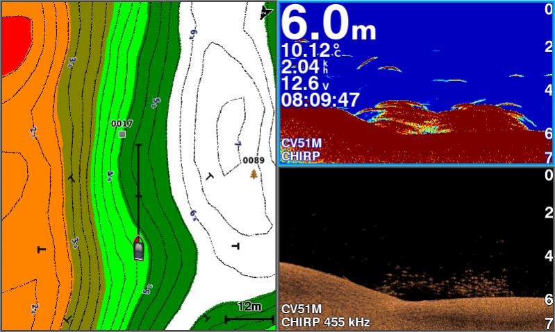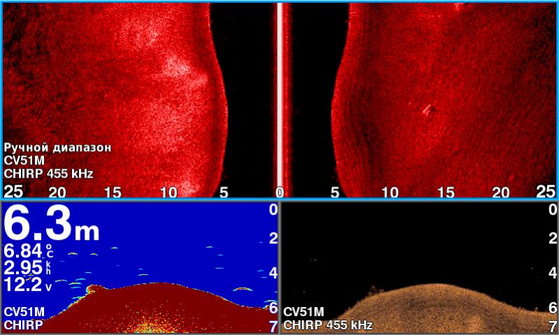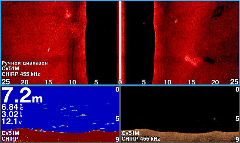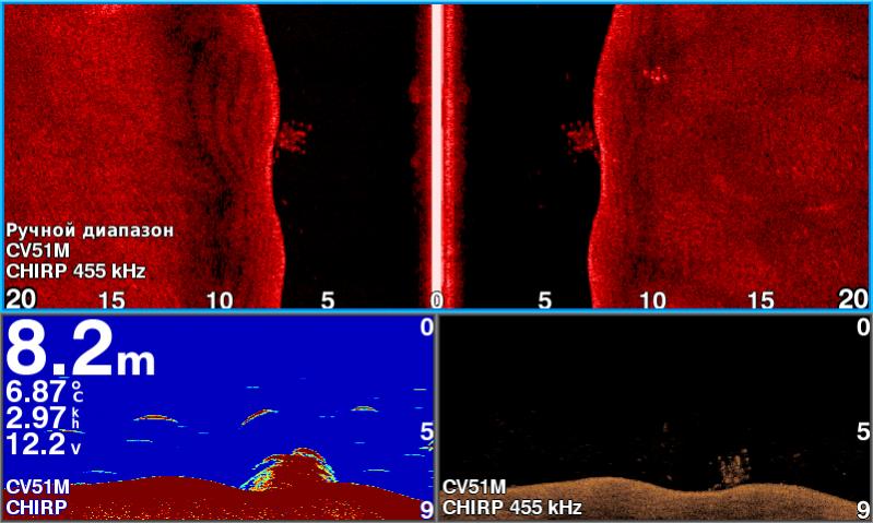 По эхолоту - стаи малька на глубине от 4 и глубже. Но на месте где клевало, малек был под лодкой.