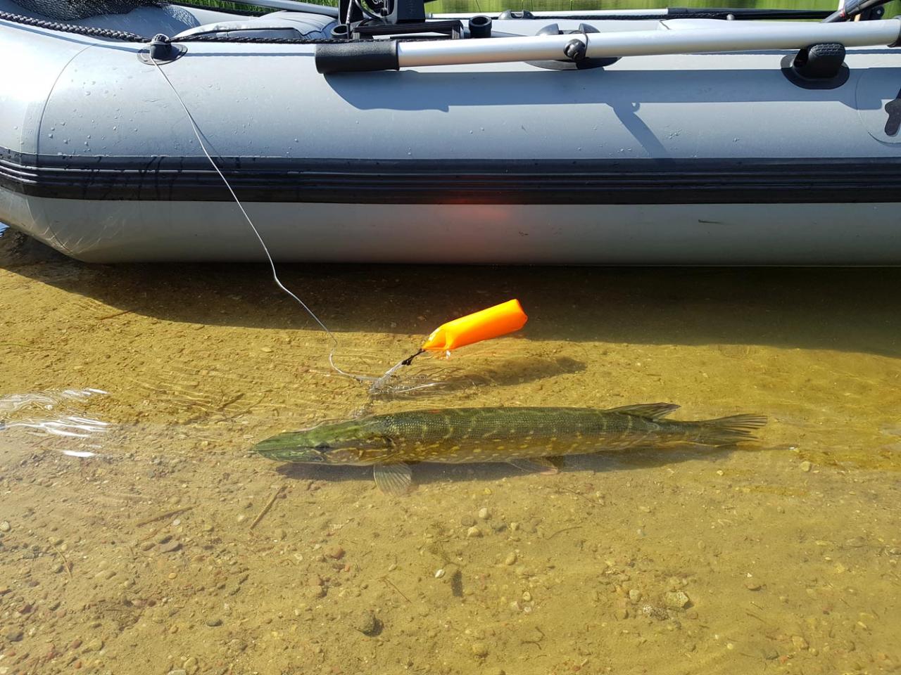 В траве сел шнурок на жеотого с полосками "колобка". И далее лишь в 8.03 с глубины (тянул метров с 5 на 2.5м) на воблер (заглубление 3.3м у воблера) кислоту щука 0.9кг. Внутри был окунек - поэтому скорее всего любит кислоту по цвету, итого 4 щуки: 0.9, 1.2, 1.6 и 1.9 - и все на кислоту...