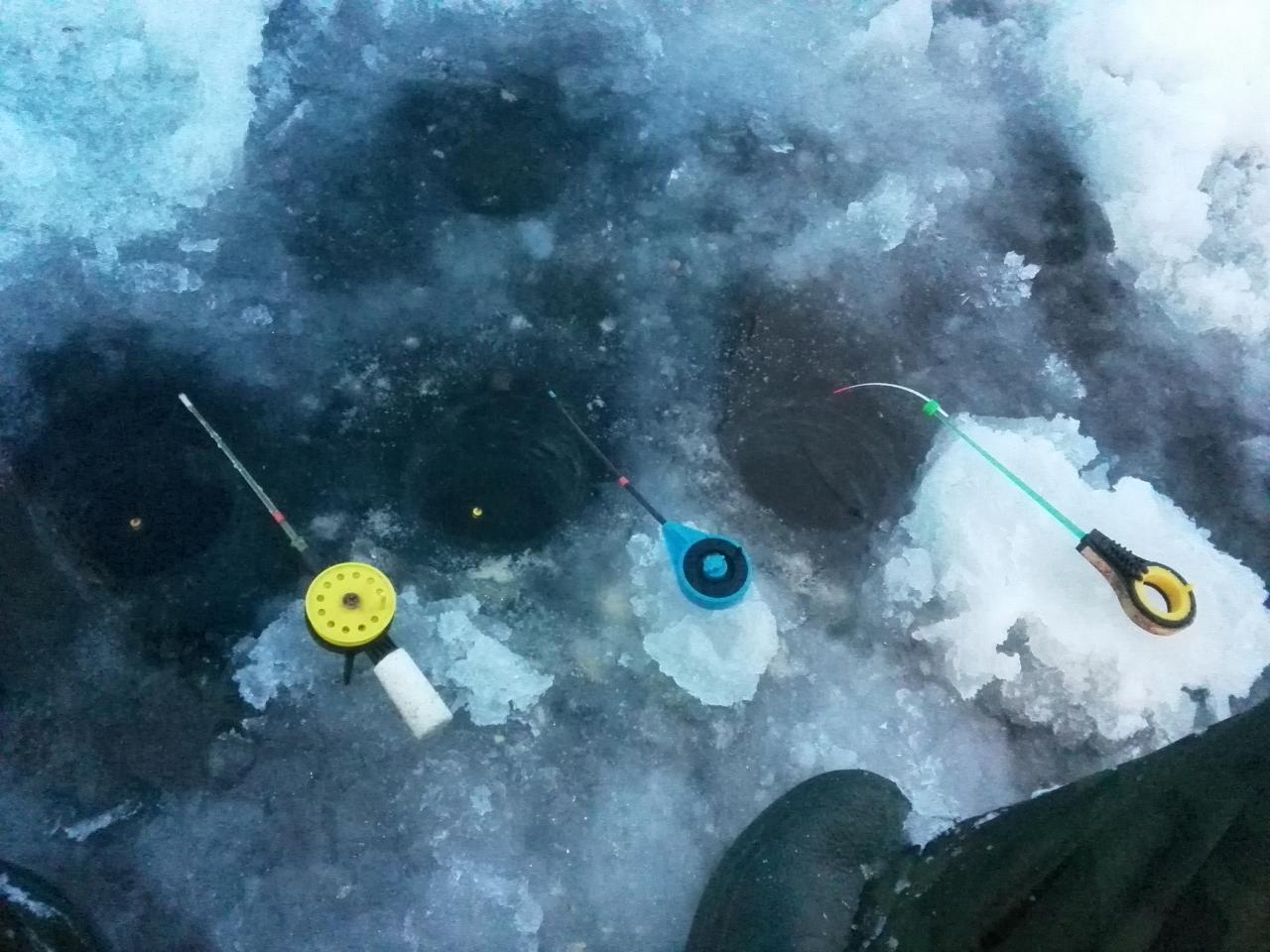 • вчера больше 5 часов просидел на большом - итог 3 окушка грамм по 80 и одна платвичка живцового размера. лёд сантов 20-25 но есть вымоены.