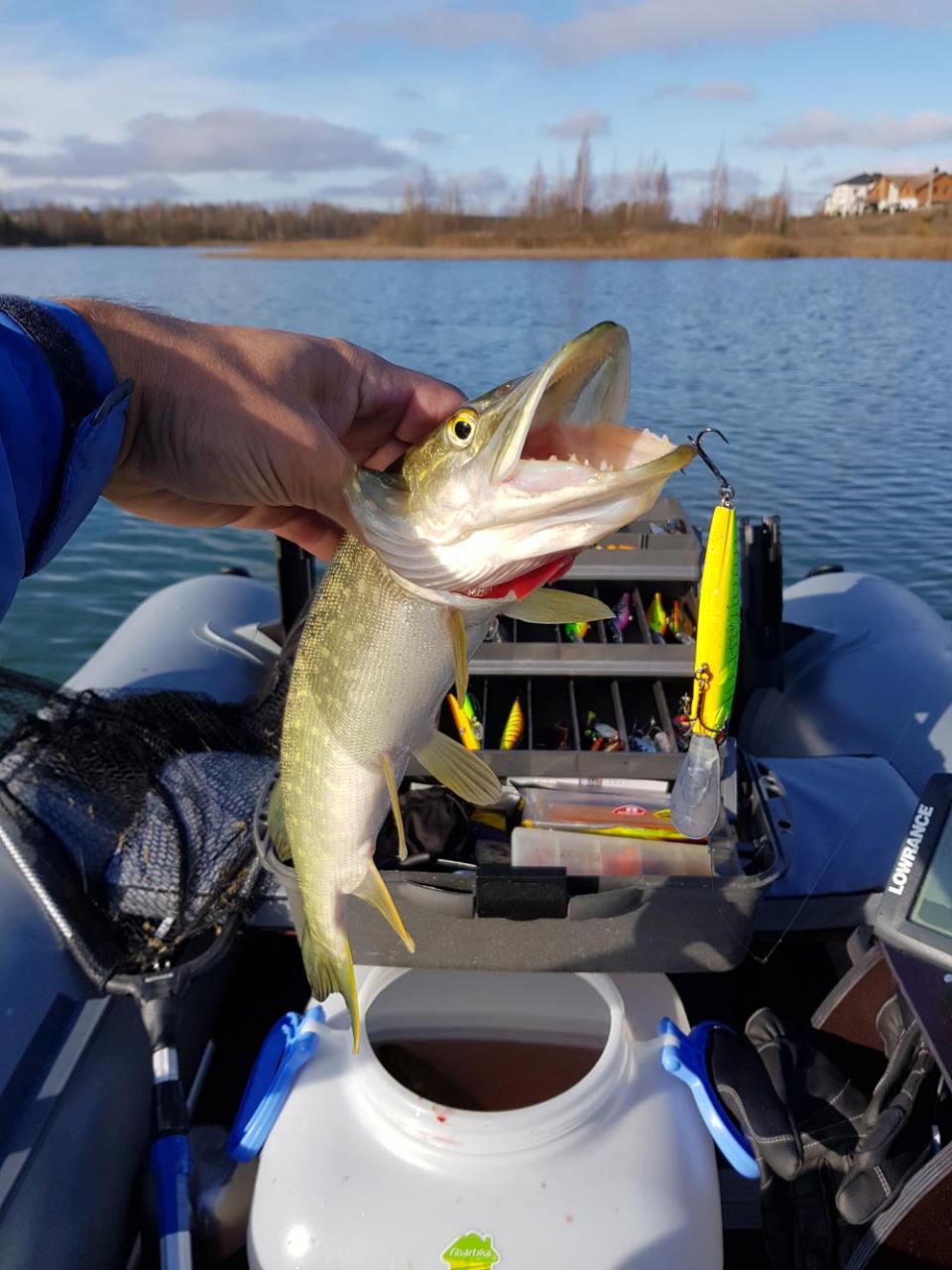 Далее направляясь уже домой, ждал товарища для вытаскивания лодки, решил покидать любиную LJ basara кислоту и на 3 броске зацепил еще щучку