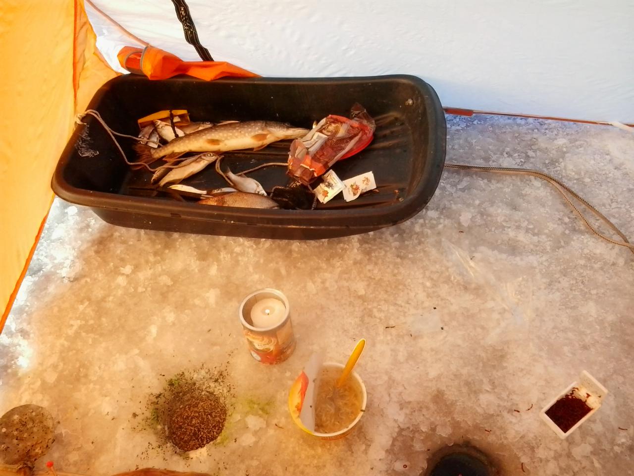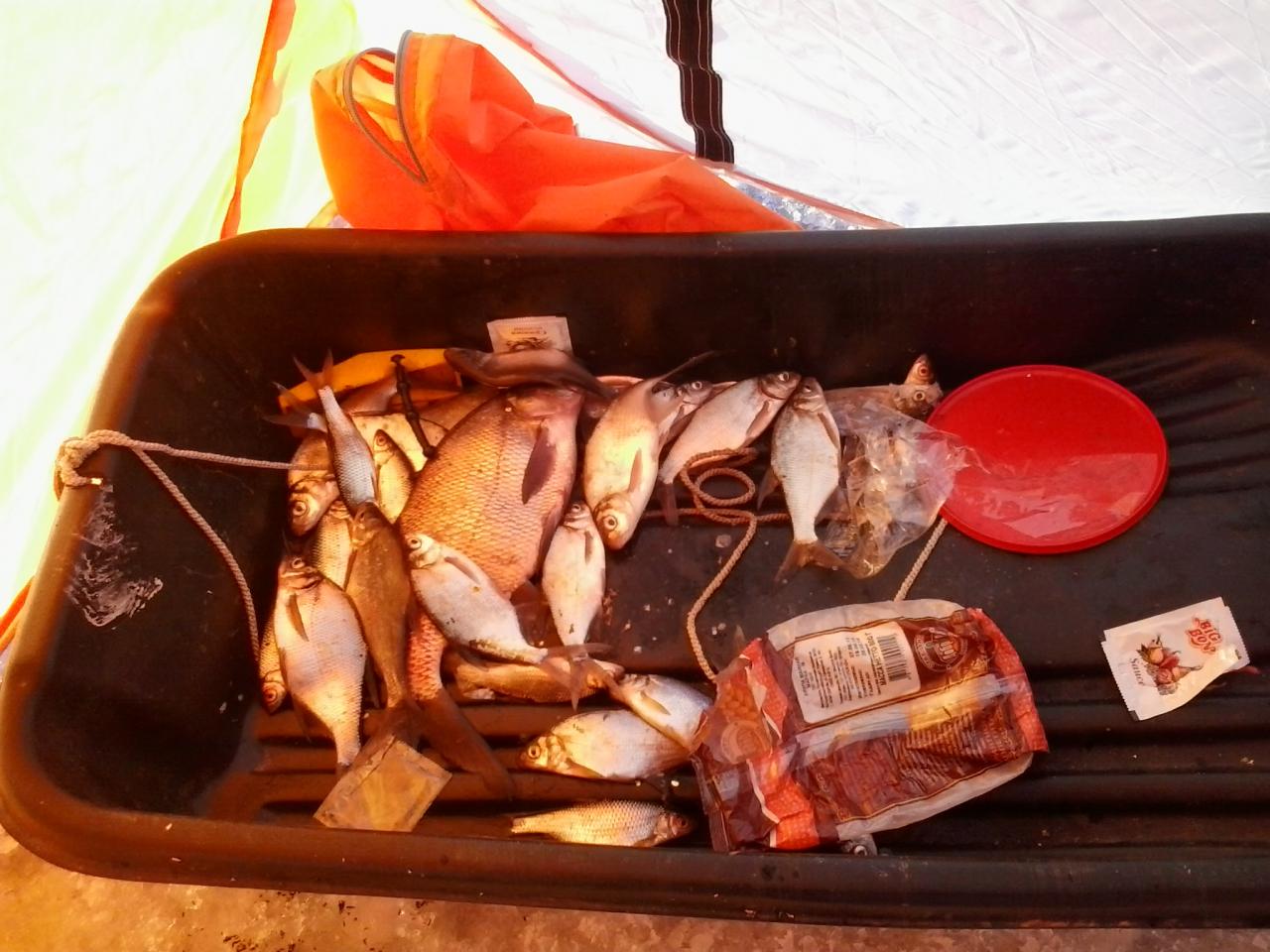 что еще рыбаку надо :wink: Итого: уловы у нас от 3600гр до 5100гр. Трое из нас могли взять по бонусу, но как обычно самая крупная рыба остается в озере :cry: у меня приятная тяжесть на той стороне лески, пару метров протянул и сход, у товарища обрыв лески практически сразу(возможно щупак), третий же постеснялся позвать на помощь и без багра решил взять лещика а тот возле самой лунки рванул и вспоминай как звали...