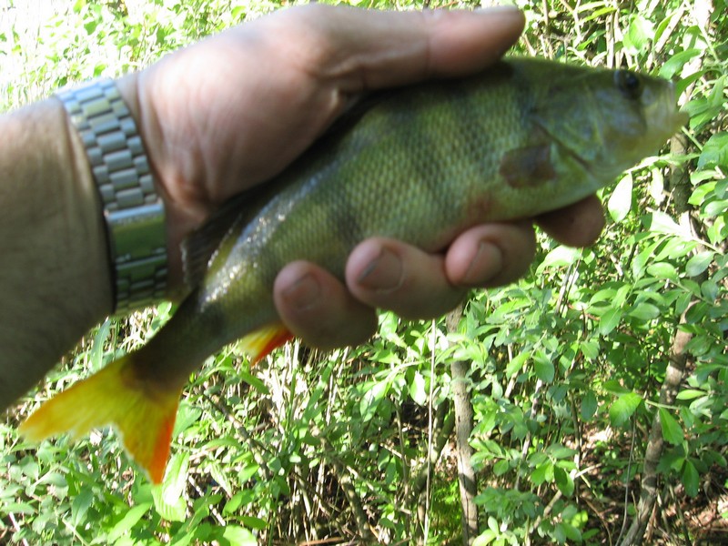 На четвертый номер тяжелую вертушку взялась мелкая (чуть больше блесны) щучка. Мелкие окуни клевали тоже на номера 3 и больше. Из достойного внимания - был только один окунь грамм на 400. Местные говорили, что на спиннинг там только осенью хорошо. Если летом - то только утром и вечером. Утром клев был получше, но не на много.