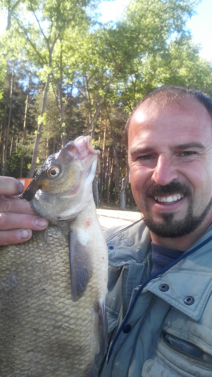 День второй 23.05.2019. С 6.30 до 14.00. Не бярэ, но цель Лещ выполнена. До 9.00 полный игнор, даже не обсасывала мотыля. Уклейка под берегом просто выносила мозг. Решил почитать что же с ней происходит, оказывается на нерест пошла, во время чтения произошла поклевка, которую я не заметил, а услышал. Фидер просто ходил ходуном, влетела плотва на 150гр, через минут 20 ещё одна чуть меньше, ну думаю пошло дело. Но нет. Снова тишина, снова читаю всякую ерунду в интернете. Надоело( Ну думаю перезабросить и тут небольшой тычок, жду, после небольшой паузы загиб вершинки, подсекаю и чувствую приятную тяжесть на том конце. Время 10.50. Упирался лещик знатно, словно паровоз тянул, когда зашёл в траву, думал все. Руки в самый верх и вот он уже рядом. Что делать дальше, подсак как назло сложен, Вообщем дал ему хапнуть воздуха, уложил на бок и с горем пополам вытянул на берег. По ощущениям было в нем за 1.5кг . После отправил его в садок чтоб немного отойти от вываживания, что бы руки перестали трястись. Сделал пару фоток и отправил его домой, подростать и плодить нам новое потомство. Точка, корм, снасть и наживка все как и первый день.