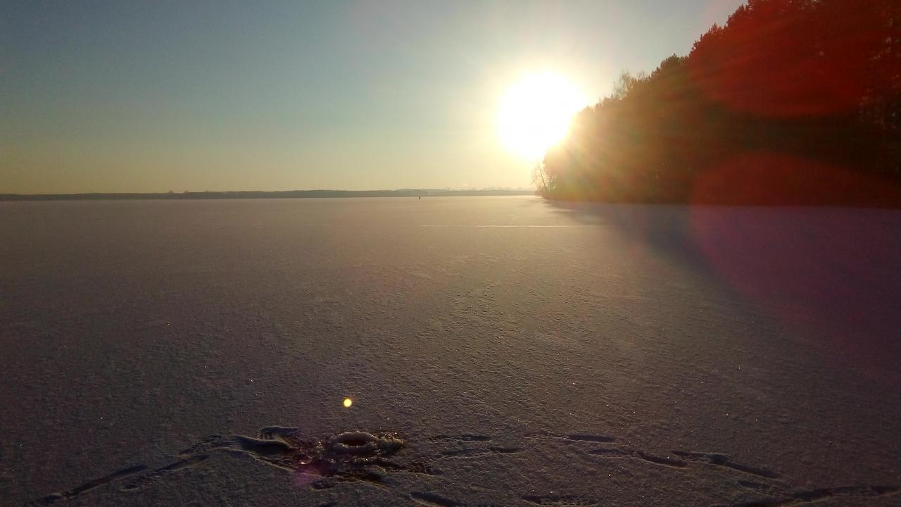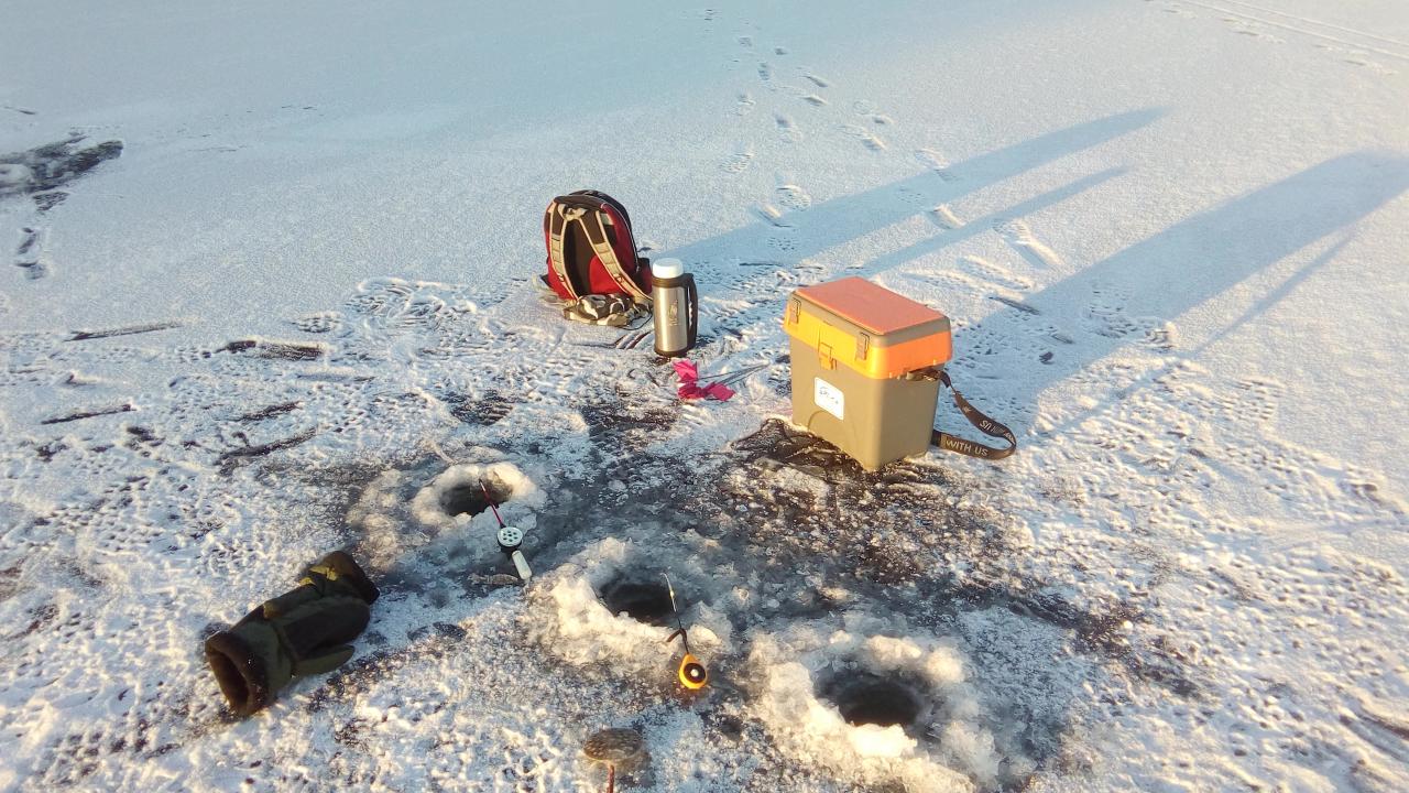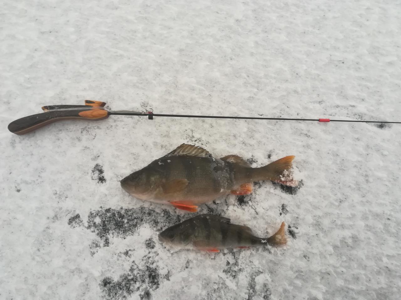 Был сегодня в районе лодочной станции с 11 до 16 часов. Лед 15 см, прочный, люди сидят по всей акватории. Кинул 4 ставки на карасика и пошел искать окуня в тростник. По итогу ни одной окуневой поклевки обнаружено не было. Примерно в 14-00 сработка. Подхожу, а там слегка размотана леска. В итоге карасик с побоями был извлечен и выброшен, по причине не пригодности. К часам 15 начались не понятные поклевки на закормленных лунках - рыбу поймать опять не удалось, что только не пробовал. Ветер сильный + метель, лунки мгновенно заметает.