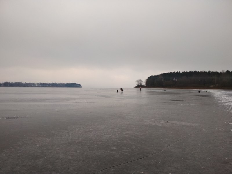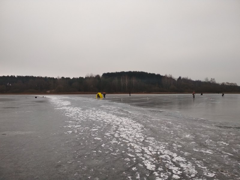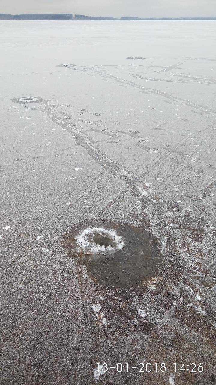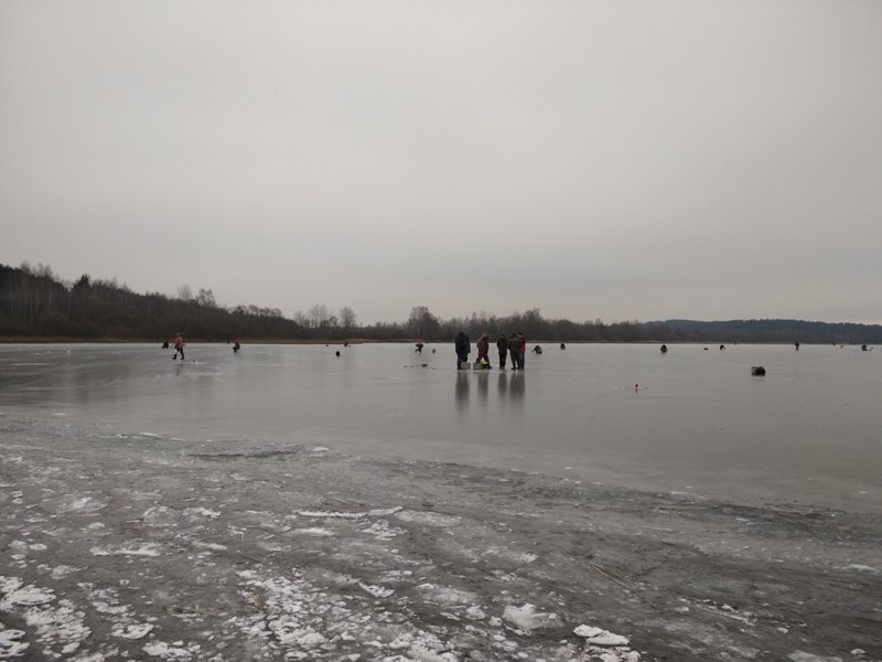 М-море, Ратомский залив, 13.01.2018 - мое второе открытие твердой воды. Толщина льда в месте лова 6-8см, местами 10см. Народ местами кучковался совсем не безопасно.