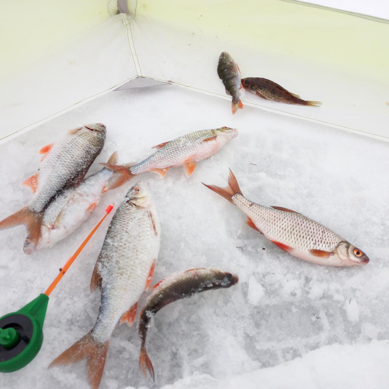 Вчера и мы посетили ММ в составе 4-х человек. Прибыв на своё место в район Юности засверлились, закормились и я пошёл выставлять ставки. Пока я поставил ставочки у друзей было уже по пару плотвичек. Прошёл и я с удочкой по лункам, но увидел только подёргивание поплавка. Где-то около 12.00 я поймал первую плотку и дело пошло получше. В итоге у меня 18шт., а у друзей 19шт.,18шт. и 21шт. По ставкам 0.