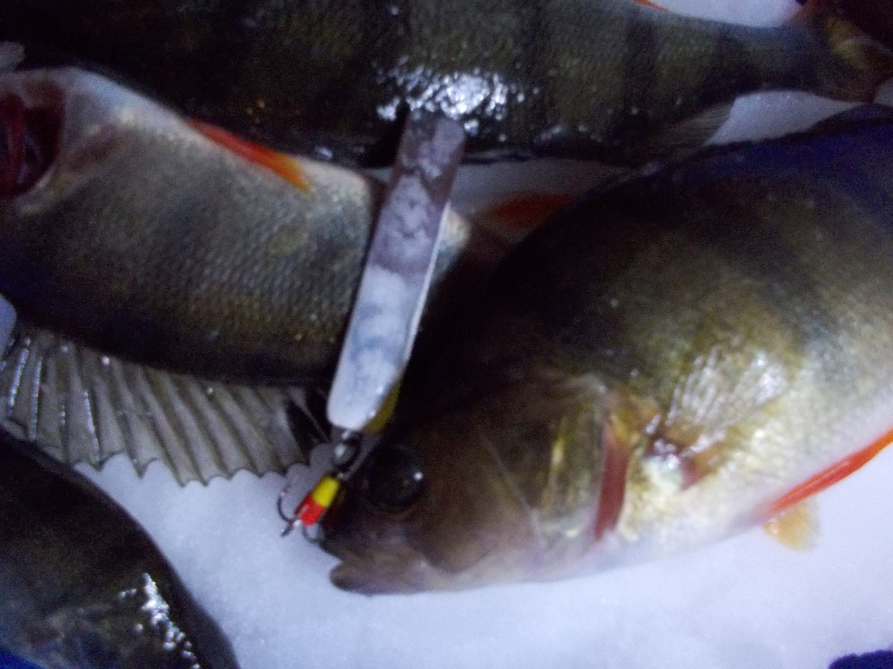 Сегодня был левее дамбы. Ловил на мормышку с подсадкой мотыля на глубине 3-4 метра (леска 0.08, мормышка - белая дробинка). Поклевки практически в каждой свежей лунке, но уговорить более 1-2 с лунки не получалось, только в одной была серия из пяти подрядВсе поклевки на игру, как на быструю проводку так и на медленную, много пустых поклевок, возможно был туповат крючок на мормышке. Ловил с 12 до 16,30 насобирал десятка два.