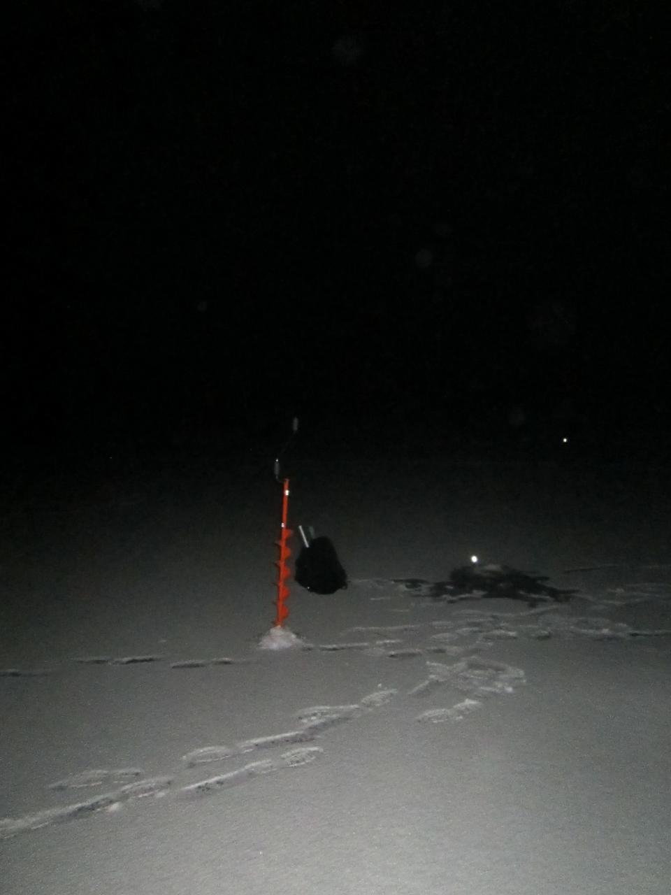 стартую обратно на вторую точку, там меняю блесну, дырявлю полянку (а днём там не полазаешь особо, так что тут у ночи плюс). прыг-скок - нуль подсечки.