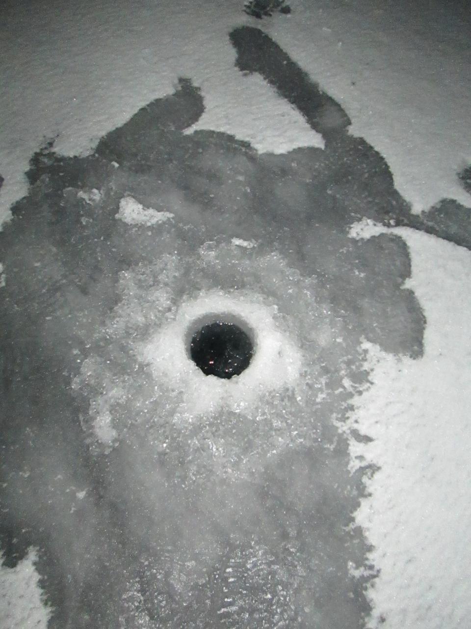 короче, точка пустая, на часах уже близко в 23ём, перехожу чуть подальше, там сверлюсь уже с флажками, ибо иначе лунки не так просто будет найти. тут у нас паря рядов, поэтому получается красивая линия. фото не передаёт всю длину, но представление кое-какое даёт: