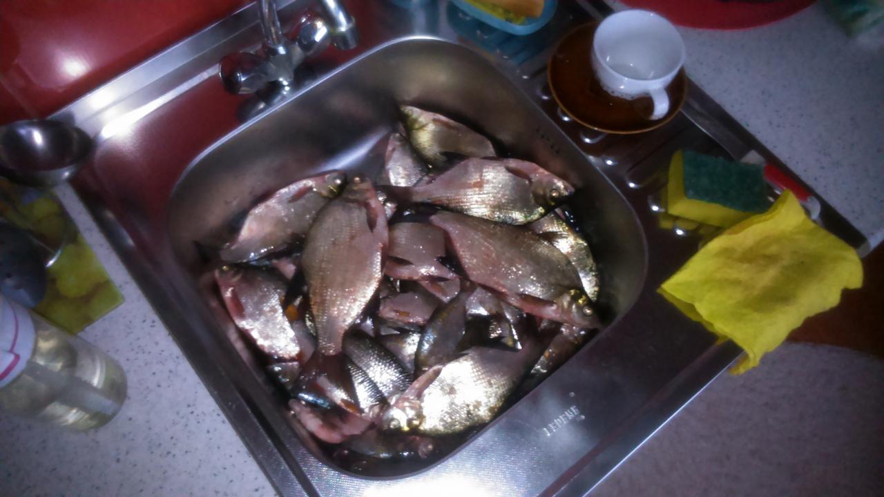 Сегодня с 7-00 до10-00, с лодки со стороны Лапарович на Глубине 2-80 м. Туман,небольшой ветерок. На мах 5 м, опарышь Мотыль плотва от 80 до 170 гр, но поклёвки редкие. Забросил фидер с лодки на бутер, через минут 30 поклёвка, подтягивал легко, но у лодки сильное сопротивление, в последний момент успел завести в подсак и обрыв повадка (009), думаю что это плотва, ну а что другое- то, крючок с поводком так и остался в пасти, дома при чистке освободил, вес 763 гр. потом сильный ветер, волна, с трудом выгреб метров 200 от берега. На берегу поставил два фидера на все чтоможно ( бутер,перловка, червяк). За ещё 3 часа одна нериализованная поклёвка, у соседей тоже почти ноль.