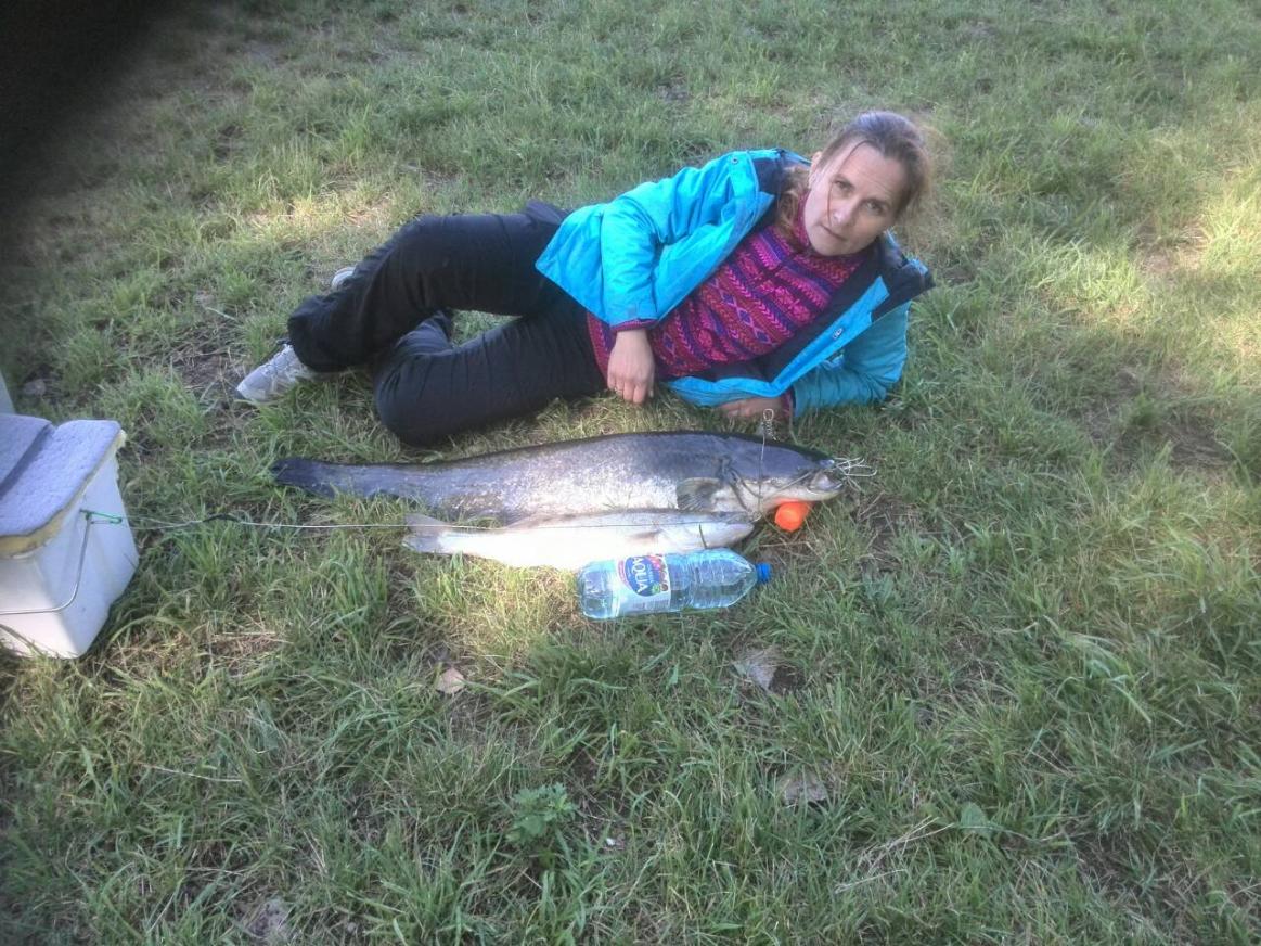 Захожу в глубину сколько позволяют штаны и зову рыбаков к берегу – послушались. Береговиков попросил принести подсак – из лодки сообщили, что нет средств подсачивания. Фидераторы, как и положено, принесли сачок для бабочек (гы……:o:D), а я лодку придержал и помог перевести дух заметно уставшему экипажу лодки. В конце концов, с третьего или пятого захода ( и с помощью перчатки тех же фидераторов), удалось залесть в пасть сомику (а это же и был сюрпрыз, да еще и женщина поднимала рыба в лодку !!!!!!!) и втащить в лодку. По моему совету, тут же на кукан одели бедолагу через жабру, а тот уже и не дергался даже. Вот такое событие , да еще и поучавствовал – лепота. Сомик длиной на вскид 1,15….1,20 м, т.е. где то «за пятерку, ближе к семерке» и достали его на УЛ сьедобной Тиогой коричневой 4”.
