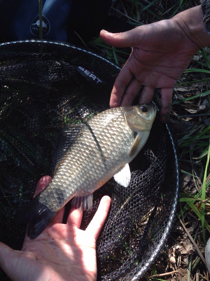 Выбрался наконец то.С утра терзали смутные сомнения погода меняется,дует ветерок,да и время 6 утра,может уклеечку погонять.Когда подъехал к развилке руки не вольно повернули -за карасём.Не много прикормки,сухаря панировочного,не много болотней тины, не много дорожной пыли- карась не умрёт голодный.Карась карасём но первый пришёл он. Крючок то уклеечный,и поводок 0.1. Что он только не вытворял,благо было куда дать поиграть .Чудо произошло взял без подсака. Сразу вспомнил продавца со Ждановичей который мне эту удочку подсуетил,в очередной раз не подвела.Товарищ спасибо тебе за KAIDA мах.6.Рисковать я больше не стал и поставил леску по толще и крючок по моще. Караси всё же пришли,через полчаса,и регулярно проклёвывали, под занавес линек пришёл.Карась по моему уже таво заканчивает нерест,линь готовится, икру у него отрувать надо.