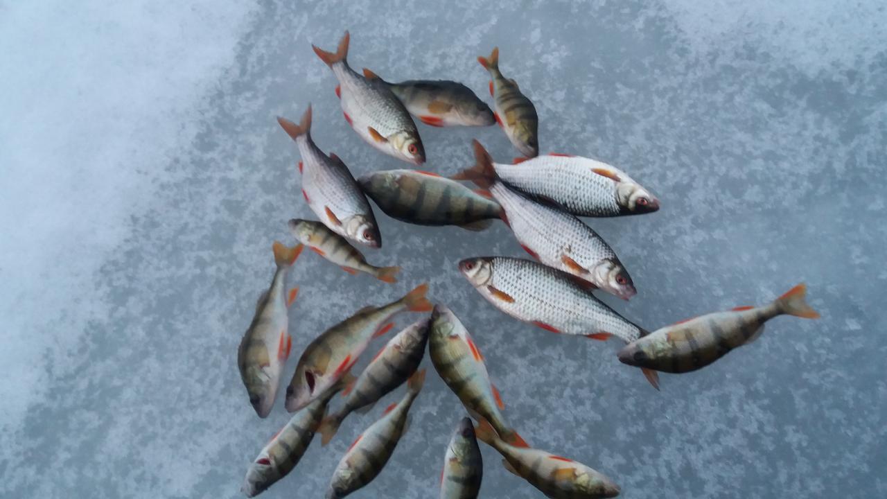 Скатался после обеда...На глубину не пошел,чесал береговую линию...Очень интересная разведка-поиск,каждая новая лунка может принести сюрприз...Плотва уже особо не нужна,но она меня и на мели находила...Да какая!!!...Москвичи про такую говорят 200гр.,хотя весит она 150-160...Но на глубине метр,на 0.1 это песня,кажется,что ты Шурик из Пухович и на том конце двушечка висит:)После того,как мордатая,полосатая падла,болтнув в лунке рылом ушла с моим вольфрамовым шариком,перестал форсировать и остальные парковались уже успешно...Только вот уже не было с зимнюю варежку величиной...Из плотвы при нажатии вовсю лезет помет из водорослей,как летом...В двух окунях малек плотвички,остальные пустые...Поклевок сто тысяч...Получил удовольствие...