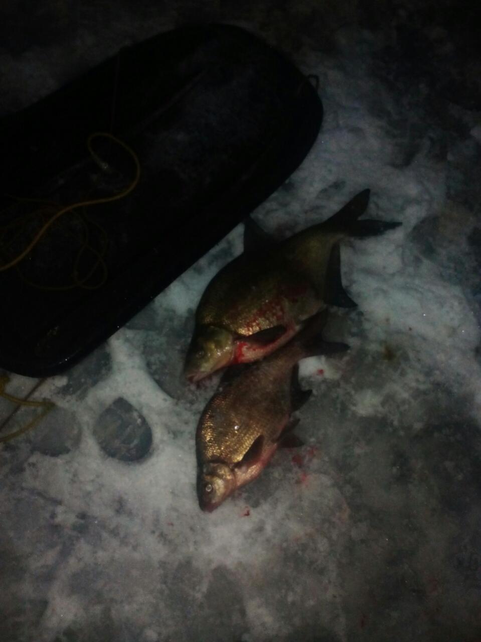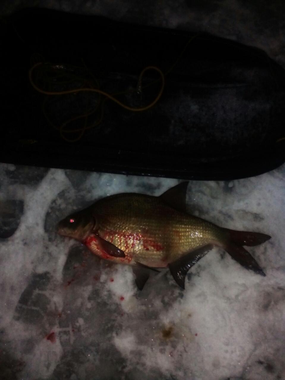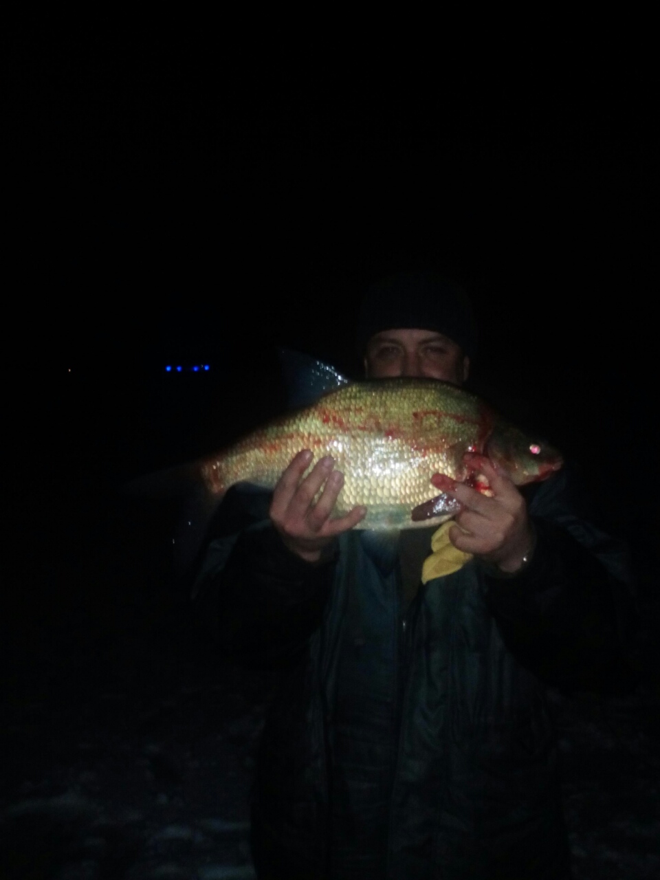Сегодня с товарищем снова побывали на данном водоеме.На точку пришли поздновато, к 21.00.Закорм матылем,по писят,и долгое ожидание....Первая выкладка аж в 2.30.Подсекаю и чувствую гирю))).с четвёртого раза завел его в лунку....на вскидку под трешку...Следующая поклевка в три ночи,закилошник...В пять утра свернулись. Взвешу отпишусь.пс:личный зимний рекорд побит,чего и вам желаю!!!