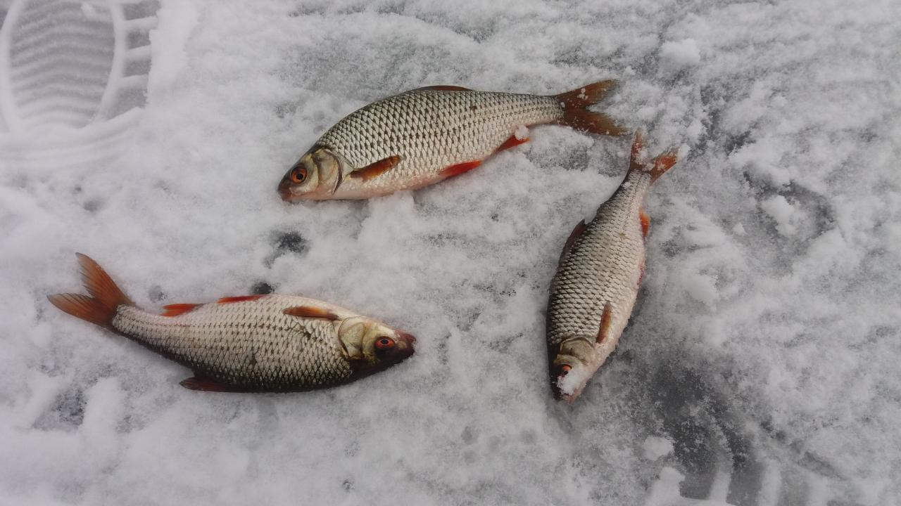 Вчера ловил в районе "краба", глубина 5,5 метра, 7 лунок. Решение поехать на ММ было принято спонтанно, по-этому с прикормом не мудрил (просторовские сухари, немного корицы). Результат: 20 плоток, 1 подлещ. Ловил на бутерброд - один репейник, один мотыль. Из-за ветра "чертить-мормышить" поленился, ловил на крючок. Брала в основном очень осторожно или вяло, как мне показалось. Много пустых подсечек: то ли торопился (эмоции), то ли руки такие. Где-то в 12.00 обрезало, докормил 3 самых рабочих лунки, на них и ловил дальше, на остальных практически не брало. Кстати: перед тем, как идти докармливать, оставил удочку на лунке, придавив ящиком. Прихожу: поплавок вроде бы на том же месте, но чуть выше. На всякий случай подсекаю - есть. То есть засосала наживу и стояла на месте. Лед в месте лова был примерно 15 сантов, днем неприятно потрескивал. Всем НХНЧ!Последний раз редактировалось Григорич; 20.02.2016, 18:24.