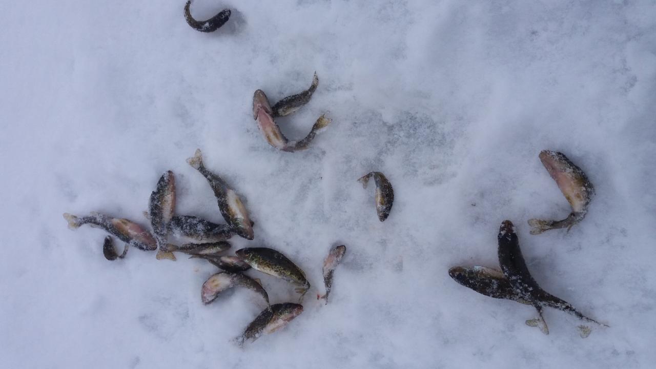 Только мормышку,блесну категорически НЕТ...Ряд ершовых лунок...