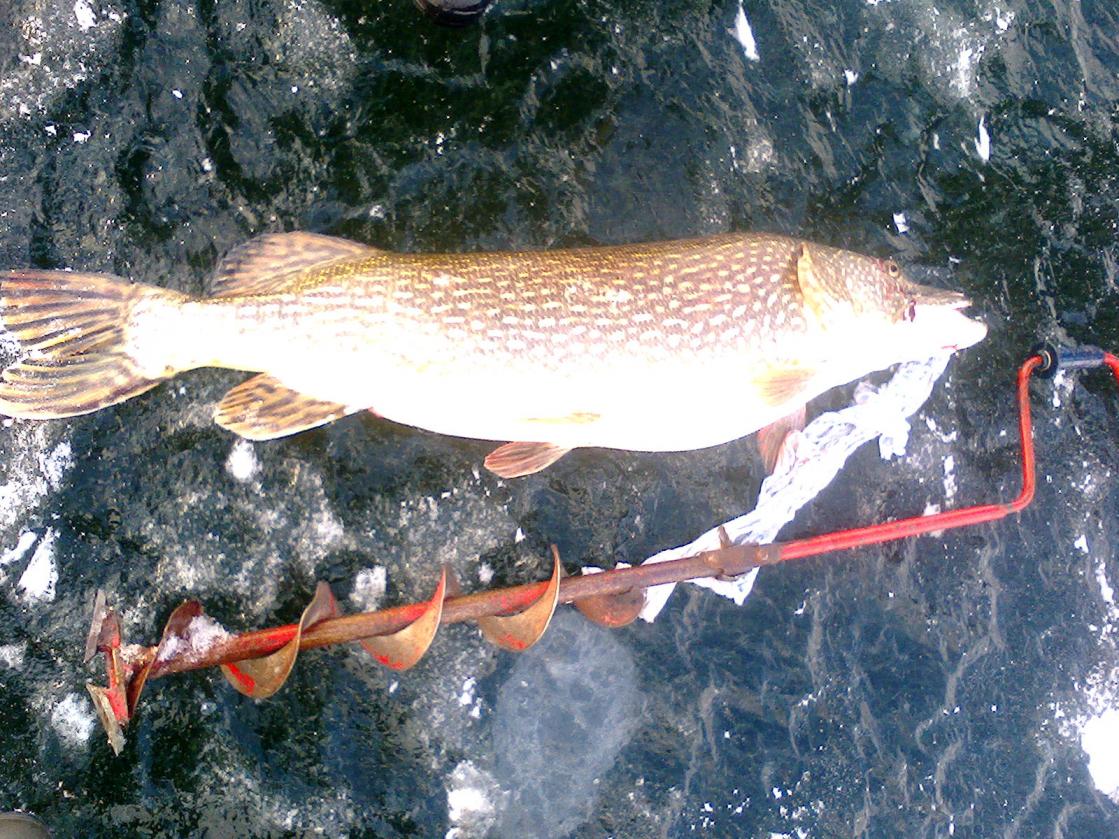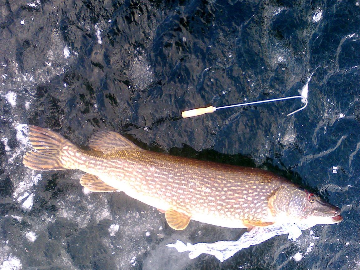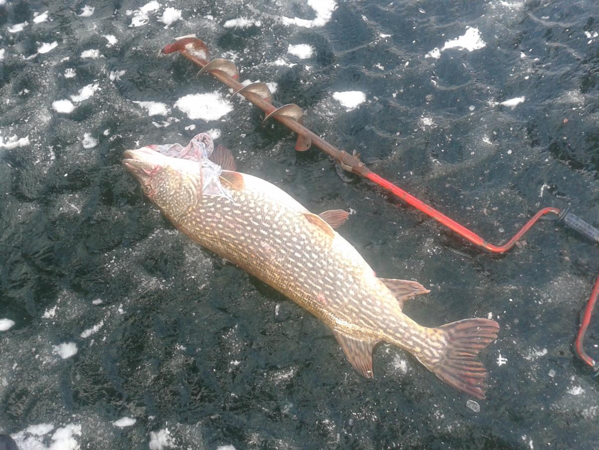 Судачили в тот денек славный на своих точках с voodoo_people,а в недалече "хозяин крокодила" вываживал и таскал туда-сюда эту красавицу!Через 5 минут поняли,что дело там серьезное и рванули на помощь с багром,но она уже не понадобилась.Матерые рыболовы уже достали ее на лед!