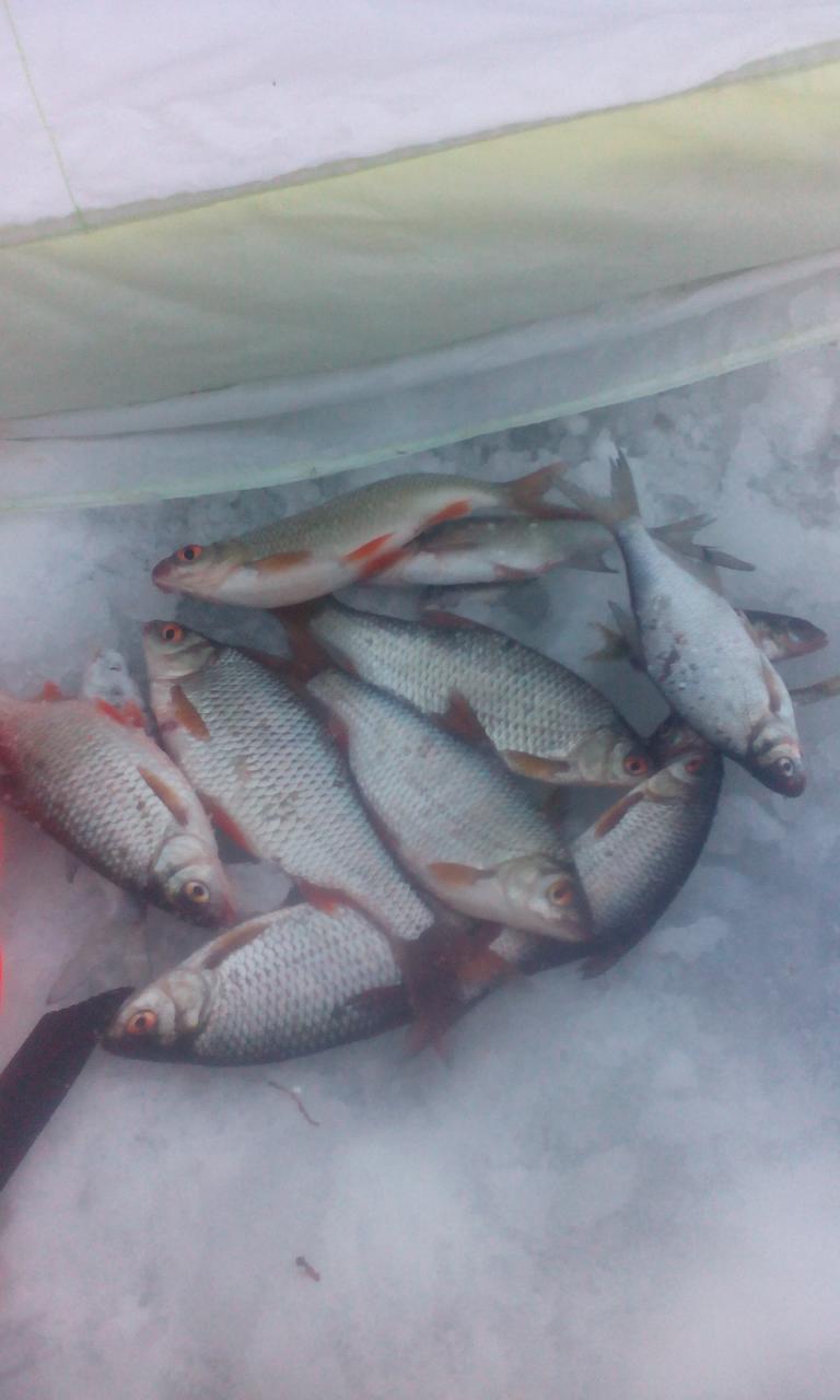 У меня сегодня плотва отзывалась с 12 до 15. До 17-и собрал 22 шт.Я ловил на макароны. Кормил по народному- пшено,сухари и семки. Товарищ кормил трапером. Ловил в 15 метрах от меня. Увёз 4 кг. мордатой. Ловил на мотыля, в палатке, правда с самого утра. У соседей по разному . Уезжали и пустые. В целом рыбка по клёвывает, если заинтересовать.3 Фото
