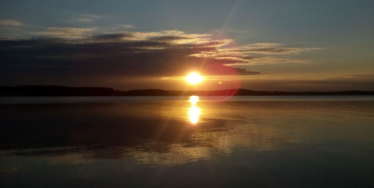 Видел красивый вид: кругом на небе тучи, а по центру просвет, а оттуда солнце светит, прямо на море, как будто абажур над столом! Красиво!