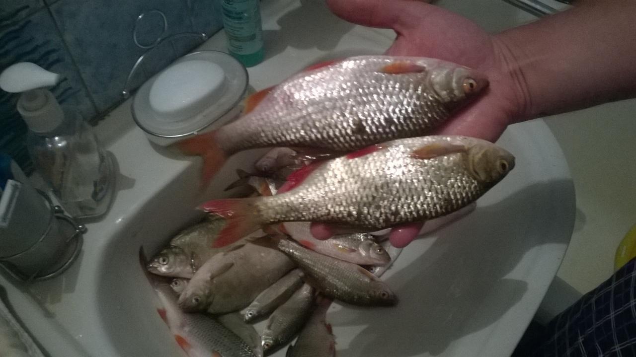 Сегодня с другом у "Дома рыбака" на двоих до 11 часов килограмма 3 подлещиков и 1 карасик на мотыля. Плотва полностью игнорировала всё, но рядом рыболовы изредка всё же доставали по плотке раз в пол часа. В конце рыбалки решил посмотреть видовой состав малька в густых водорослях, зачерпывал мелкоячеистым подсачеком. За пару раз было выловлено 1 карасик серебряный, один золотой, один линёк, пару плотвичек, штук десять мелких рачков и штук 20 ротанов (не бычков, а именно ротанов).