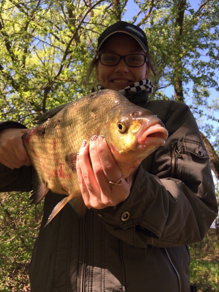 доброго всем дня, прошу прощения за задержку. 10.05.2015 ночью выдвинулись на Цнянку, решив встретить рассвет с попытками поймать нерестившегося карася. Все попытки отказались тщетными, и досидев до 08.00 мы решили сменить место дислокации и направиться на Минское море, попытать счастья с лещом. Около 10.00 прибыли на ММ и забросили пару фидеров. Простояв около часа ни разу не шевельнувшись решил обновить насадку, поживее так сказать нацепить, а также решил попробовать дальний заброс, подальше от трости. Перезабросив расположился у костра с девушкой, и минут через 20 глянув на кончик одного из фидеров увидел достаточно четкие и мощные "подергуны". Подсечка, кончик сразу дал понять что на конце далеко не пусто. Нечто повело кормушку метров за 60-70 от первоначального места заброса, а после чего уже направилось к берегу, сопротивляясь мощными одиночными рывками, которые достаточно успешно отрабатывал фидерный кончик (поводки 0.12 были для перестаховки). Спустя минуты 1,5 на берегу оказался бронзовый мощный лещ. Радости не было предела, так как до этого момента сезон открытой воды был открыт плотвой, карасем и уклейкой, а ведь так хотелось леща. И вот он, красавец. Под адреналином от первого трофейчика по быстрому насаживаю свежак и снова дальний заброс в ту же местность. Через 2 минуты очередная поклевка, но увы... крючок оборван, те самые 0.12 дают о себе знать. Более поклевок не было. Такое ощущение что он сейчас стоит на дальнем расстоянии, как раз после скоротечного нереста.