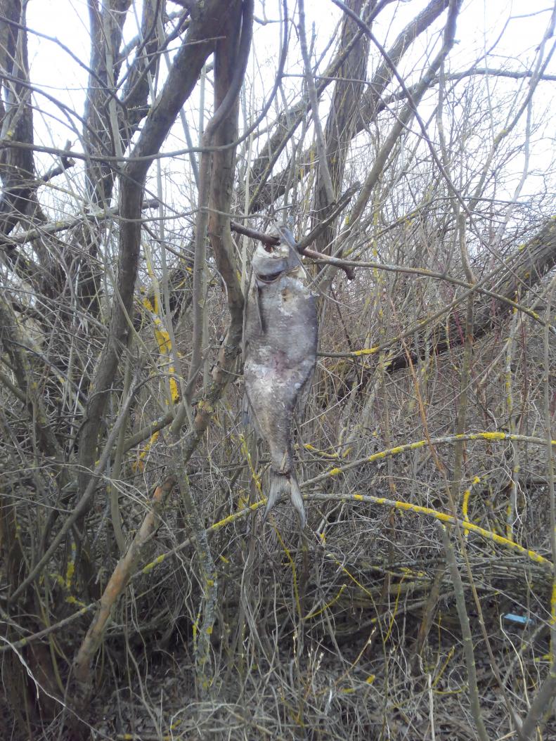 А вот такой трофей какие то веселые рыболовы решили подарить кусту.Может ритуал вуду на удачную рыбалку делали.