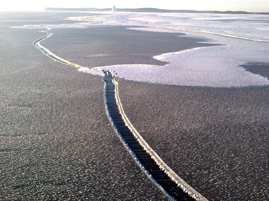 На море был к 13,пока дошел до нужного места уже было 13-30,сразу отмечу,что там первый раз и искал нужную точку,которую условно знаю,только я.До вечера встретил мимо проходящих 3 судачатника,но у всех по нулям.Попозже подтянулся "дружбан по болезни" voodoo_people ,вместе и начали искать клыкастого,где-то к 16 часам первый подброс блесны,замена "блестяшки" не дала результата.На ММ есть вот такие места,толщина льда в трещине 2-4 см,благо трещины в этом месте были не большие..Нужную точку за всю рыбалку,так и не нащупал,но будем искать,еще пол зимы впереди..Глубины где "судачили не колебались больше чем на 30-35см,ровное плато с небольшим заилением дна.