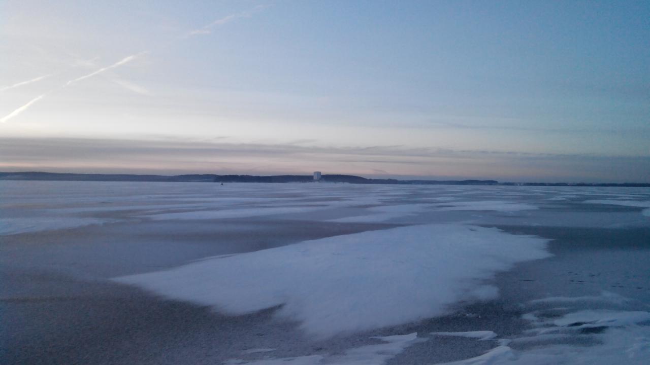 Сегодня с самого утра на ММ(еще затемно). Цель - судак. Мороз с утра был хороший... а я еще и легкие сапоги обул - померз немного :)Луночки замерзали моментом. Но все пофиг. Поупирался до 10ч. и понял что шансов нет - солце яркое,а клыкастый такие дни нелюбит. Пару окуневых тычков "за цепочку" и все.Пошел к берегу в надежде найти окуня. Возле берега познакомился с челом с форума(Zmey) - Дима привет