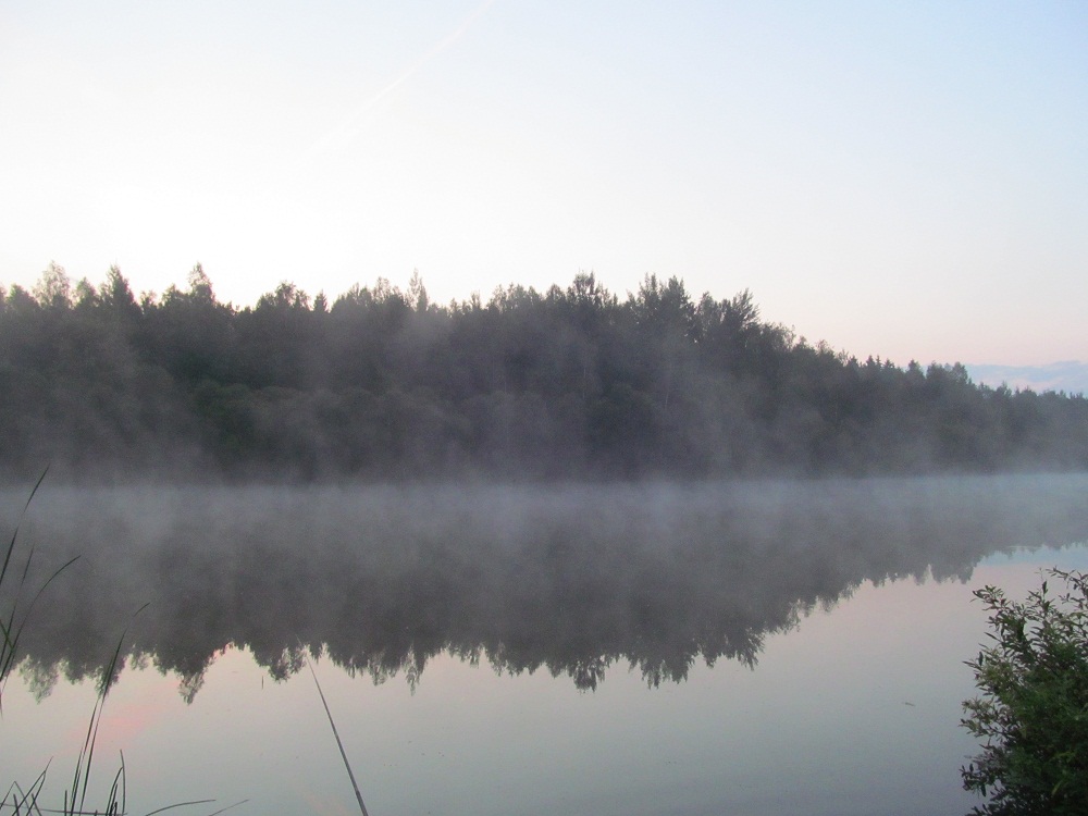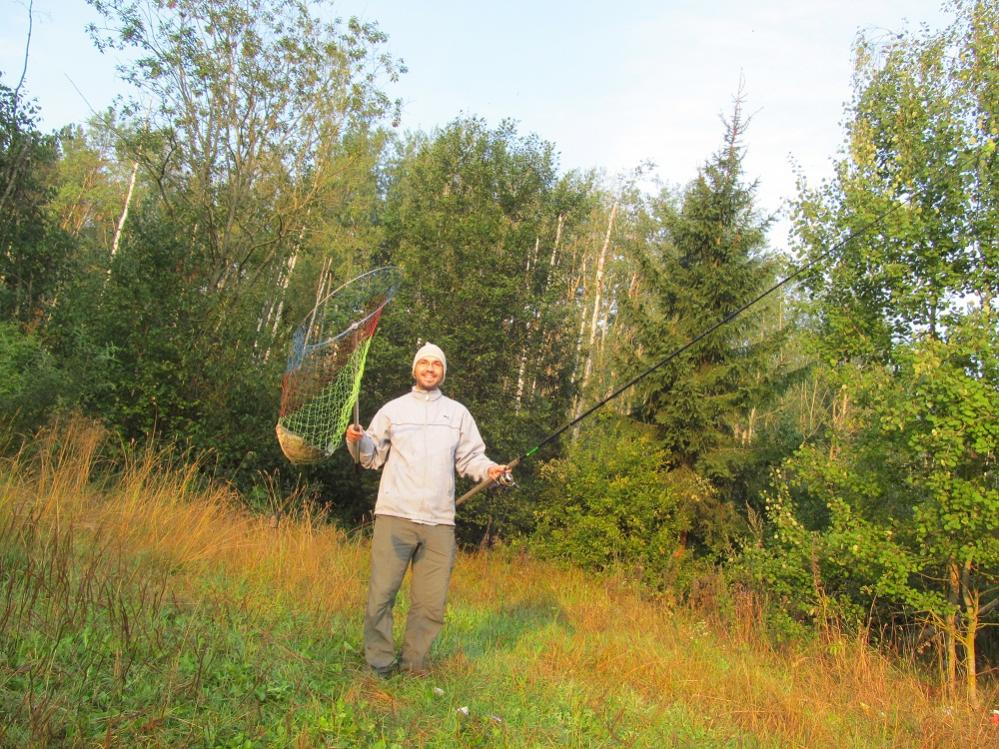 Утро, туман, журавли, бабочка, стрекоза, ну и рыбалка. Это было что-то! Всё (кроме мелочи) сын выловил на фидер. Насадка - кучка мотылей и опарыш. Ни одного схода! Я была ответственная за подсачек. Ну и махала удочкой, чтобы "порыбачить". Мелочь взяли только ту, что у меня на удочке сильно заглотила крючок. Ни одной рыбы с лигулёзом! Да! А на обратом пути нашли 7 маслят!