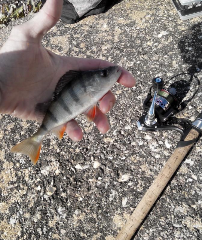 Возле дамбы на отводной поклевывал окунек до 100 грамм...