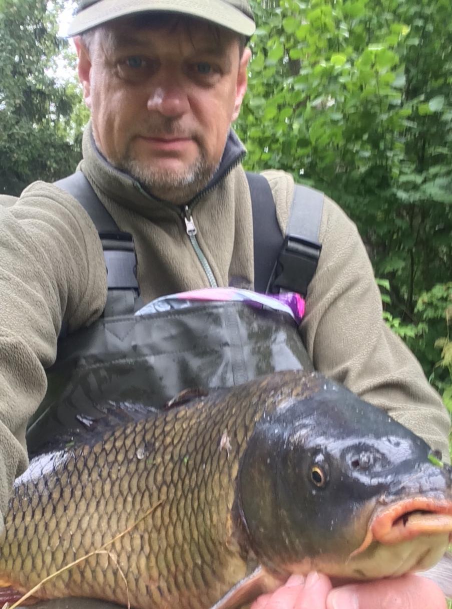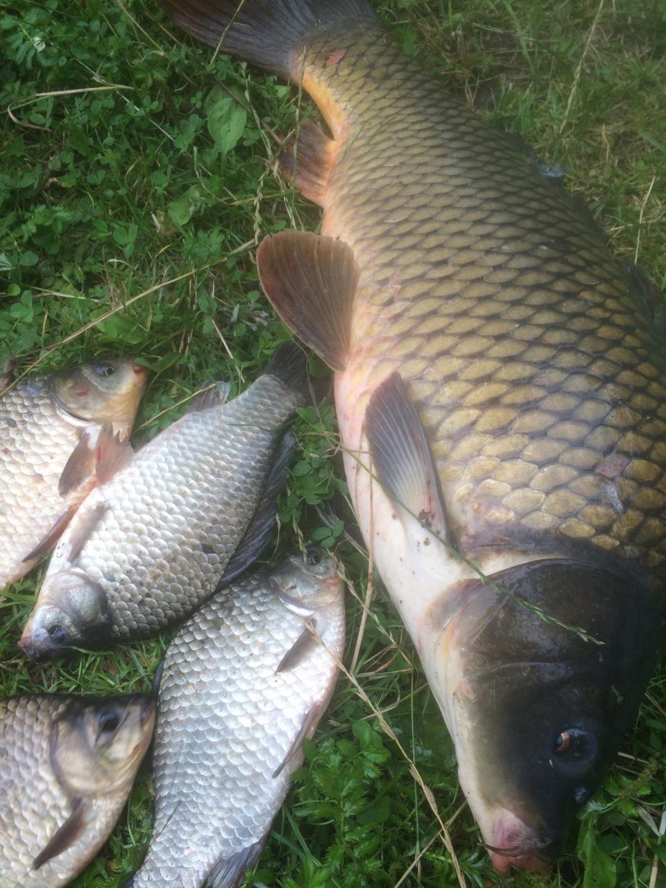 Наконец-то мы встретились – это шикарный карп, 5 кг. Фидер, сработал попкорн 8-ка от Traper, мед, хотя надежды были на самодельные бойлы…