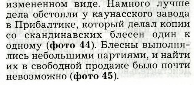 В принципе, об этой книге (Пышков А. Смирнов С. "Клёвая книга спиннингиста") и идёт разговор и в вопросе истории происхождения тех или иных блёсен она изобилует неточностями. На своём форуме я высказал мнение о некоторых нестыковках в книге и если оно кого-то заинтересует, то, чтобы не искать данную тему в интернете, скопирую сообщение оттуда сюда.