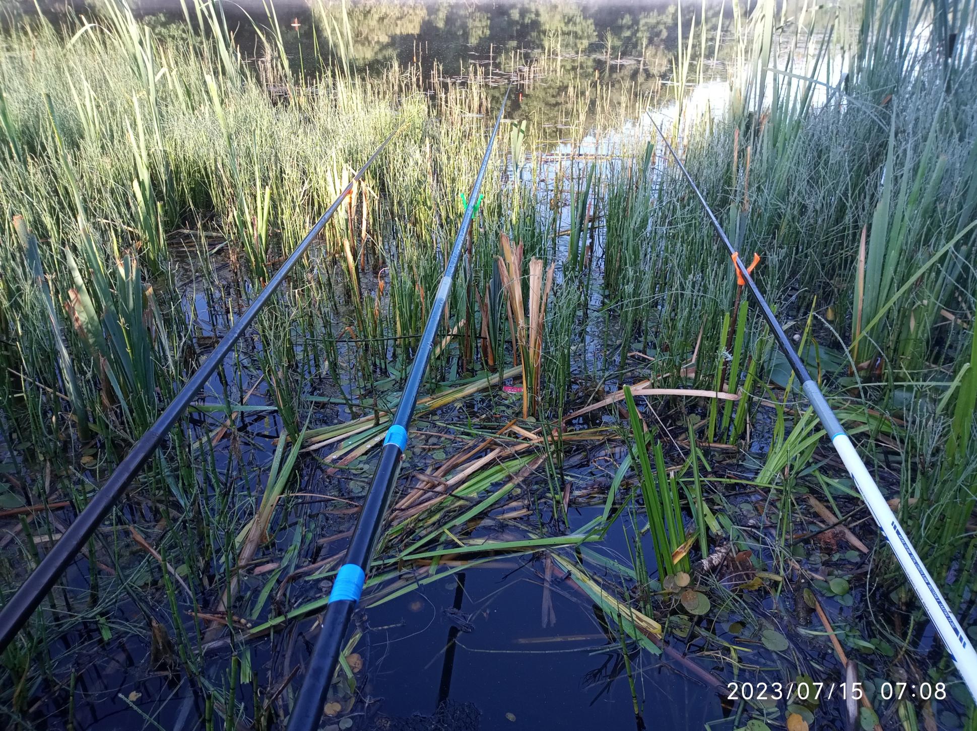 Приехал часов в 20. Народ есть, но не много. Выбрал перспективное место возле кувшинок, закормил ГПС+творог. Закинул две поплавочки+два фидера.