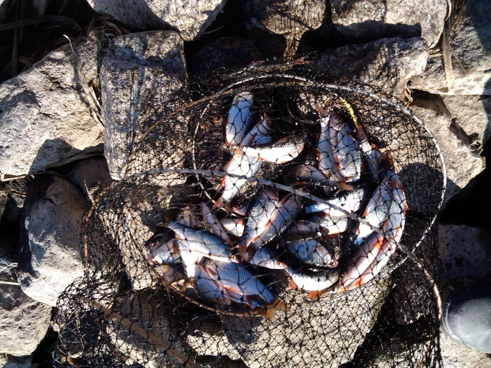 Особого труда стоила сортировка (мелочь выпускал сразу): в стандартной ситуации выпустил бы всю рыбу ввиду размера, или почти всю - может какой десяток остался бы чтоб непустым домой ехать(мой критерий - ладонь, около 20 см длиной, все что меньше выпускаю), но для друзей жеж делалось...