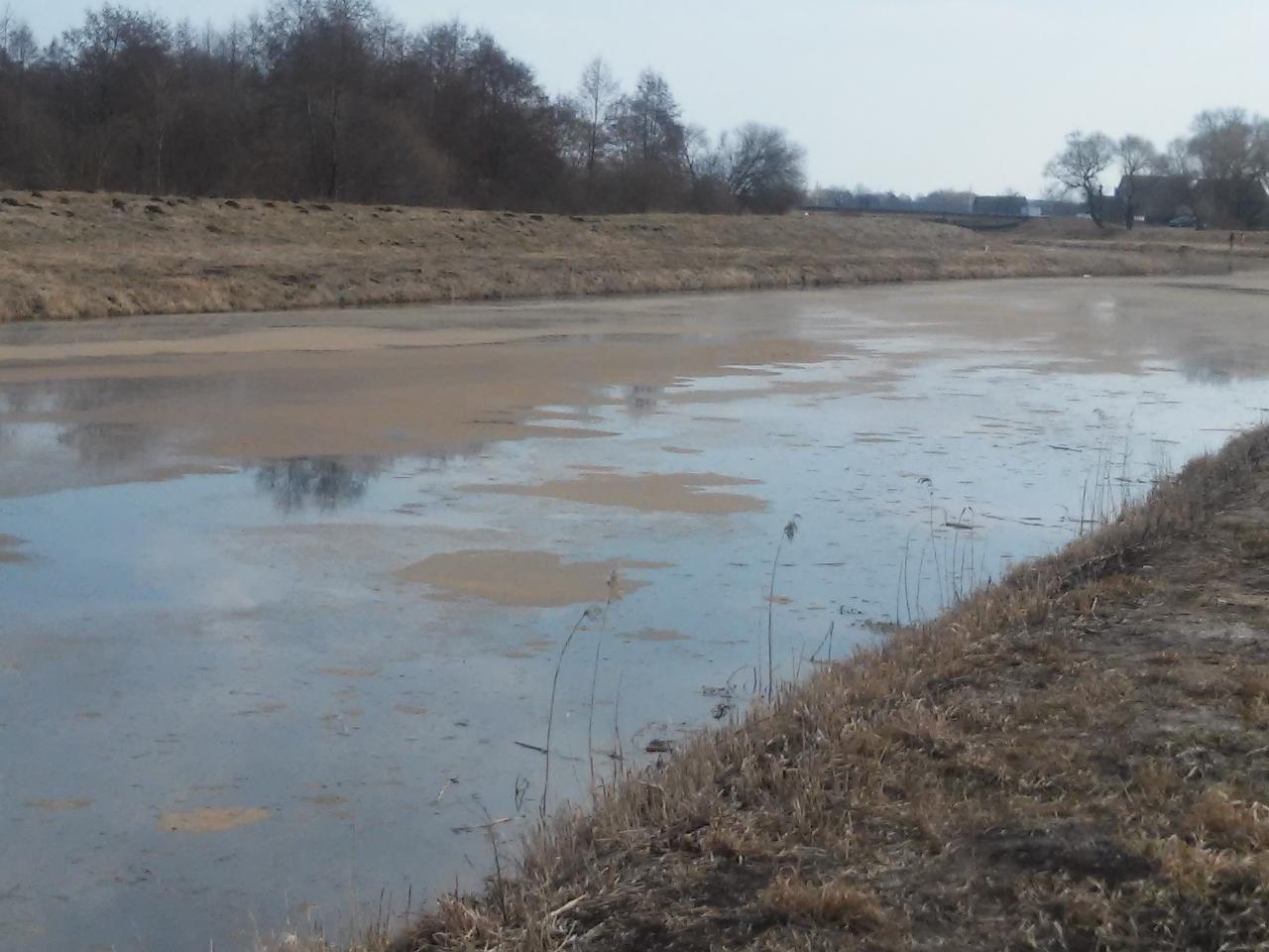 • Был на канале в Заславле. МЧС продолжает сыпать абсорбенты (или как их там) в воду. Боны стоят возле пешеходного моста в Дехновку. Вода вся в разводах нефтепродуктов. Рыбаков много, но рыбы нет((( Печально. Похоже, возвращения рыбы ждать долго.