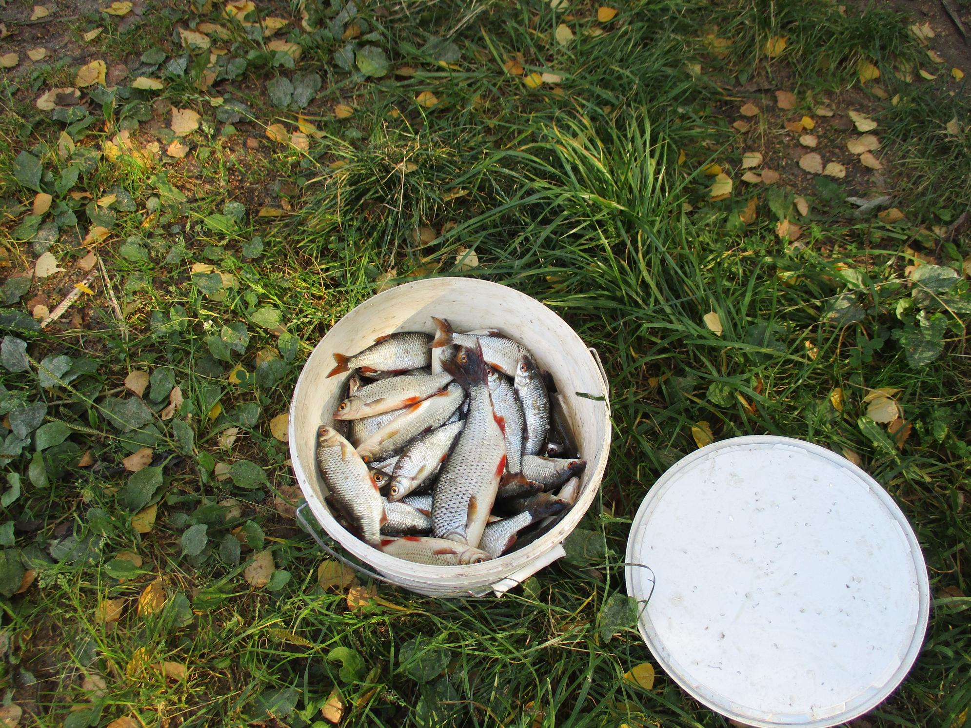 На «нашем» участке канала к этому времени располагались компаний 5-6 рыболовов, по словам одного из них, многие уже свернулись, и вообще «не бярэ». В подавляющем преимуществе народ сидел с фидерами. Ушли за крайних рыбаков метров за сто, расположились. Глубина под шестёркой – около 1,5м. Закорм, як заусёды, ГПСом СЦД, варианты насадок/наживок – мотыль, перловка, червь, опарыш, макароны. Начал традиционно с бутерброда. Первыми подошли (или, скорее, просто тут и были) матросы мелкие и очень мелкие. Единично проскакивала такая же мелкая плотка. В результате экспериментов с насадко-наживками выяснилось, что на прикорм собрался «паулешчык» и его интересовал исключительно мотыль, хотя был у нас он достаточно «подгулявший». Лучше работала «метёлка» из двух-трёх штук. Сосед – любитель вяленой рыбы, поэтому ловили в его садок, отпуская откровенную мелочь. Подсака «по традиции» не было, соответственно, несколько экземпляров упустили под берегом. Самого крупного помог соседу взять рукой, на глаз, грамм 600. Влетел даже амурчик, не мало нас удививший своим присутствием. Тоже пришлось рукой под берегом ловить. «Iстрабiцель», не имевший возможности составить нам компанию и по телефону руководивший процессом, амура велел отпустить «бо ён няукусны». В 18.00 свернулись по необходимости, хотя рыба клевать продолжала.
