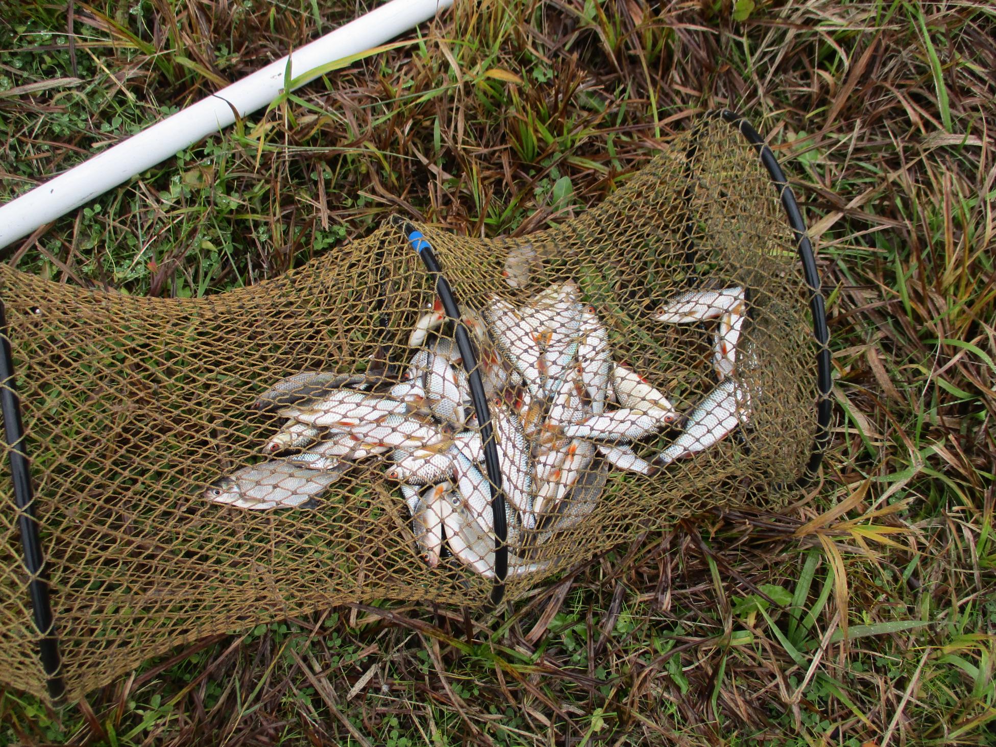 У меня в прилове 5 молодых лещей в районе 50 грамм каждый, 2 уклейки, штук 10 окуней, мелких.