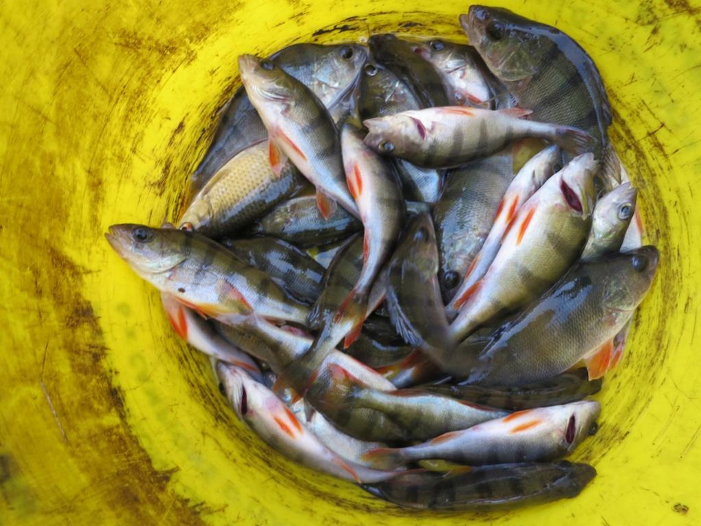 Ловился не самый мелкий окушок, думаю, что в среднем грамм по 30-35 с отдельными бонусами до 50 грамм. В итоге Виктор изловил 29 матросов на 2-х граммовую оснастку и одну плотвичку.