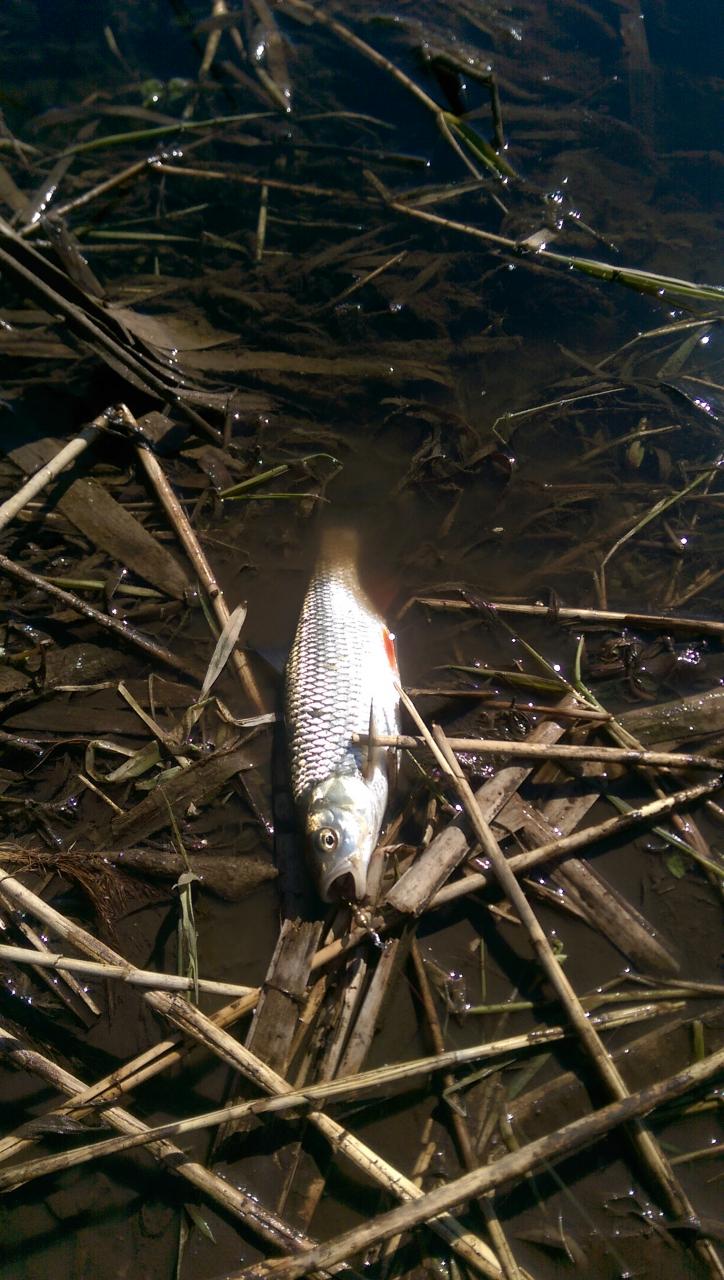 Посредственная была для рыбалки субботняя погода. Еще при сборе снасти на берегу понимал, что нечего тут "ловить". Прошелся за полтора часа по нескольким точкам, поклевок не было, как и не было признаков какой либо активности всякой рыбы. Но рыбы все же увидел - недавно вылупившиеся "щупаки"))