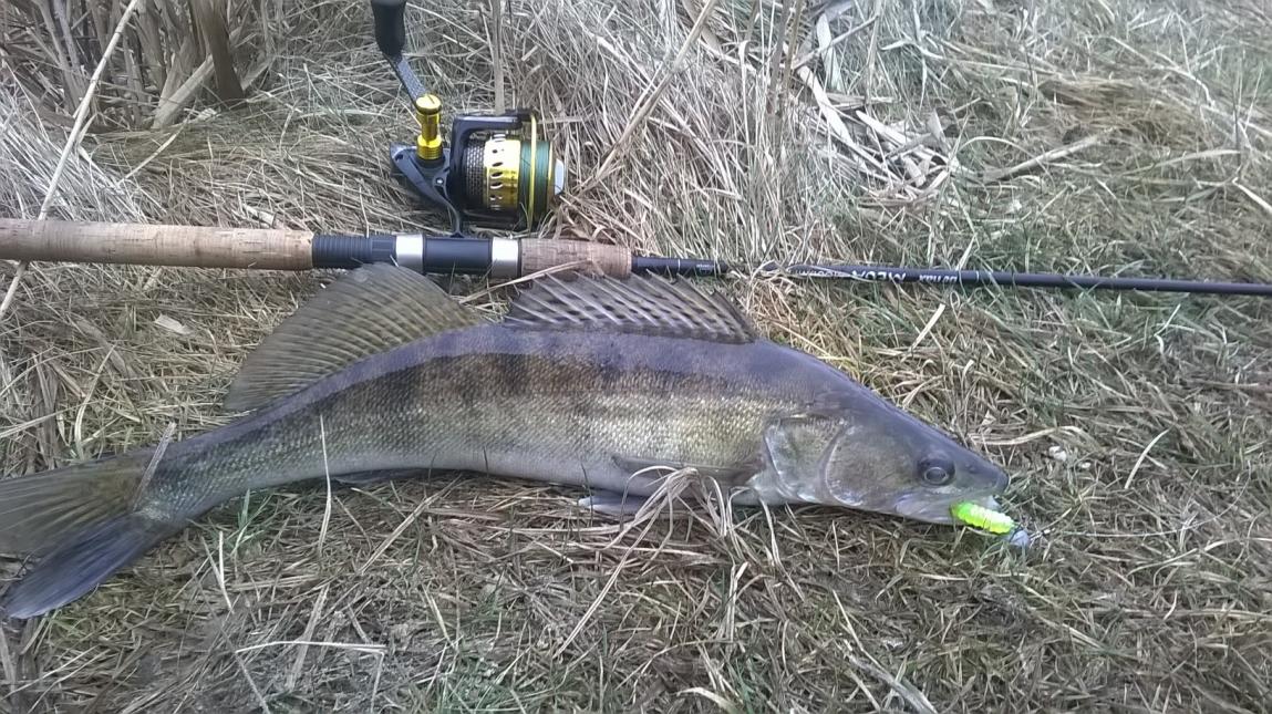 • Сегодня под вечер выбрался на одну ямку поджиговать судака. Случилось практически подряд две поклевки на юмовский твистер и в результате два откусанных хвоста. На этом, к моему сожалению, такие твистеры закончились. Хотя все-таки одного на 1,1 кг я поймал. Свой спиннинговый сезон по судаку открыл.