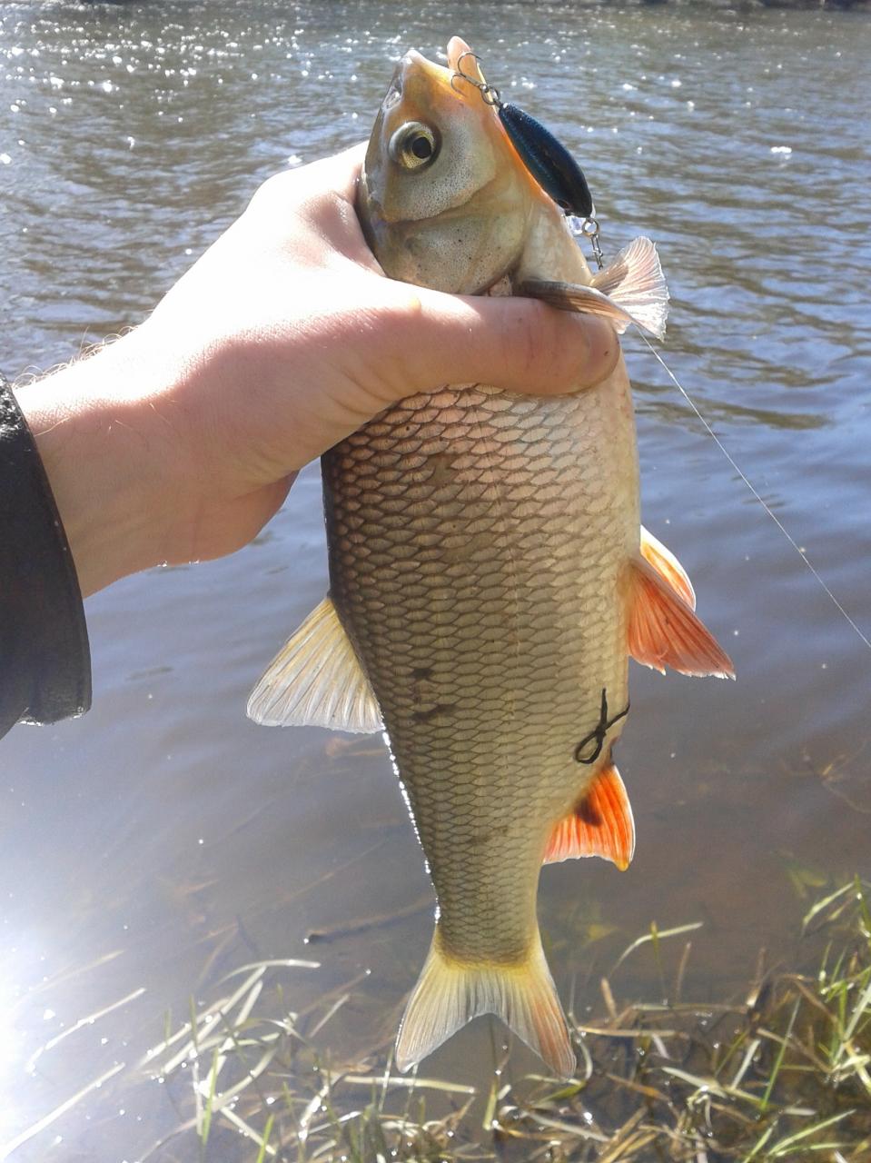 • Сегодня вышел именно за голавлем, проверить так сказать присутствие. После непродолжительного полоскания L-minnow 33, голавль обозначил себя мощным ударом. После вываживания, ему было дано указание продолжить плавание.:p