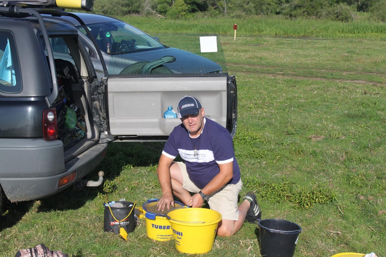 Кормлю,начались какие то поклевки ... не скажу чтобы активные, но они начались. Сергей вылавливает платву... я подлещика , опять тишина.... Тут мы заметили: что когда он "пылит" то у меня появляются поклевки.... прорабатываем .... и это приносит нам кое какие поклевки .... снимаю с точки густерку и пару пустых поклёвок .... Час до первого взвешивания.... на точке рыбка не приходит..... держу темп 5 мин , т.к на столь малой глубине частые перезабросы тяжелыми кормушками явно влияли пагубно на клев... Вдалеке вижу как в начале секторов начинают взвешивать ..... и у меня поклевка , есть подлещ, заброс .... еще подлещ..... Тут и судьи подоспели .... взвешиваемся 630гр... вторые в зоне.... у товарищей слева кроме крупного язя ничего !!!