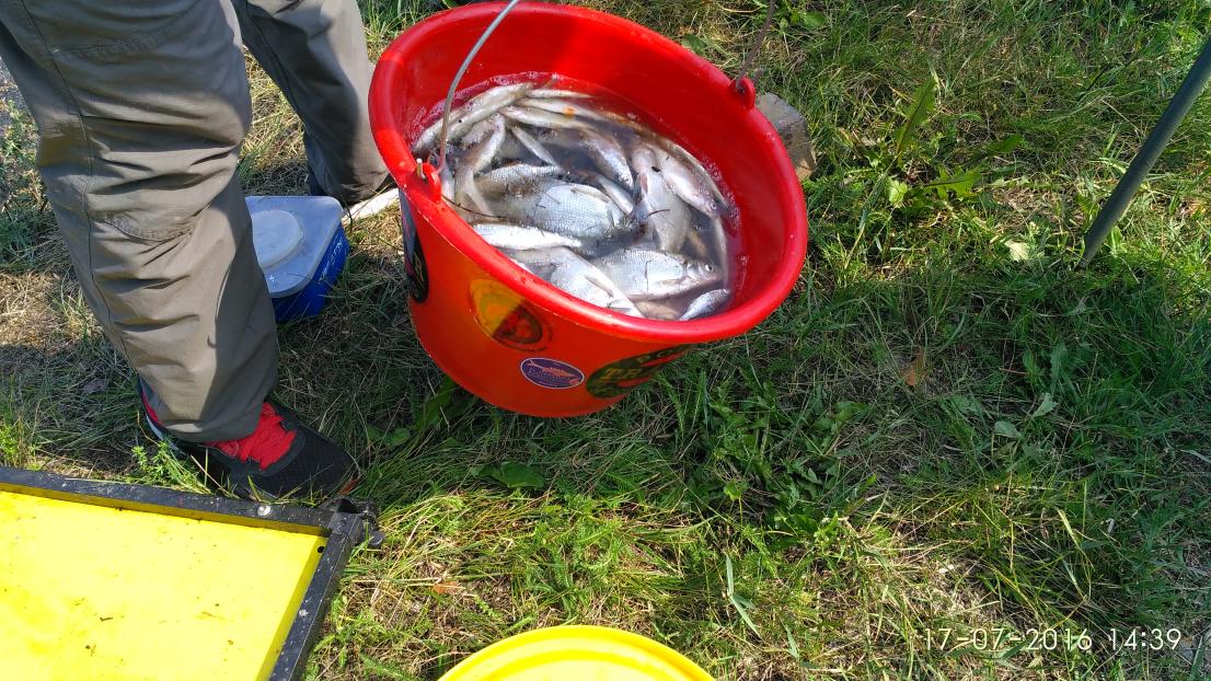 Нас в зоне взвешивали первыми. Примерно 4,5 кг мне показалось мизерно мелким результатом, по сравнению с тем, как часто у соседей мелькали подсаки. Даже пошел посмотреть по зоне, что наловил народ. Как оказалось, народ ловил примерно так же, как и мы. Лещик моего сокомандника Андрея на 1200гр вытянул нас с серединки весовой таблицы наверх. Единичка.