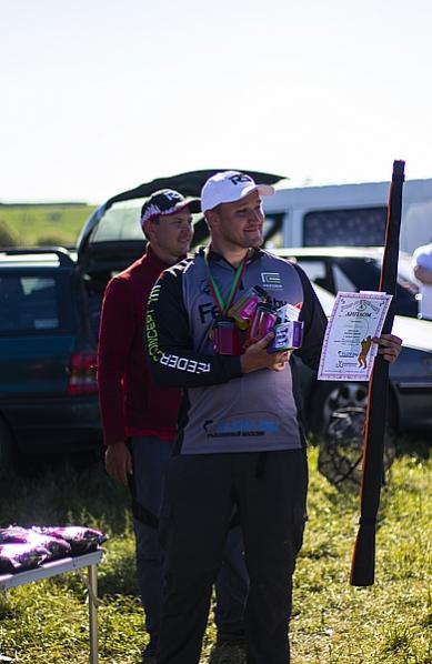 Немного хотелось бы сказать о ловле на пруду Черняховский. Тренироваться мы начали за две недели до начала турнира. На первых тренировках клевала плотва и попадался карпик. Но клев его был не стабильным, в основном это были утренние и вечерние выходы. Когда карп выходил покушать, то прикормка не имела значения, он кушал все. Но чем ближе приближалось время к турниру, тем карпик клевал все хуже и хуже. Зато клевала неплохо вездесущая плотва. Она клевала на всех дистанциях и на любую наживку. Поэтому мы и не сильно в нее упирались думая, что в туре она клевала бы тоже хорошо. Но как обычно случается, на тренировках одно, а на турнире все совсем по-другому. Карпик не клевал а плотва стала довольно капризной. Нашей ошибкой стало то, что мы мало времени уделили ловле плотвы, и не разобрались как ее активно ловить весь тур. Спасло только то, что никто из команды не улетел ниже середины, а Серега Мельник еще и единичку взял во второй день, благодаря отличной работе нашего тренера Лехи Опикана. Таким образом нам удалось вырвать бронзу, уступив серебряным призерам только по общему весу. Первое место у Feeder.by Club. Очень сильное, ровное выступление. Поздравляем!!!