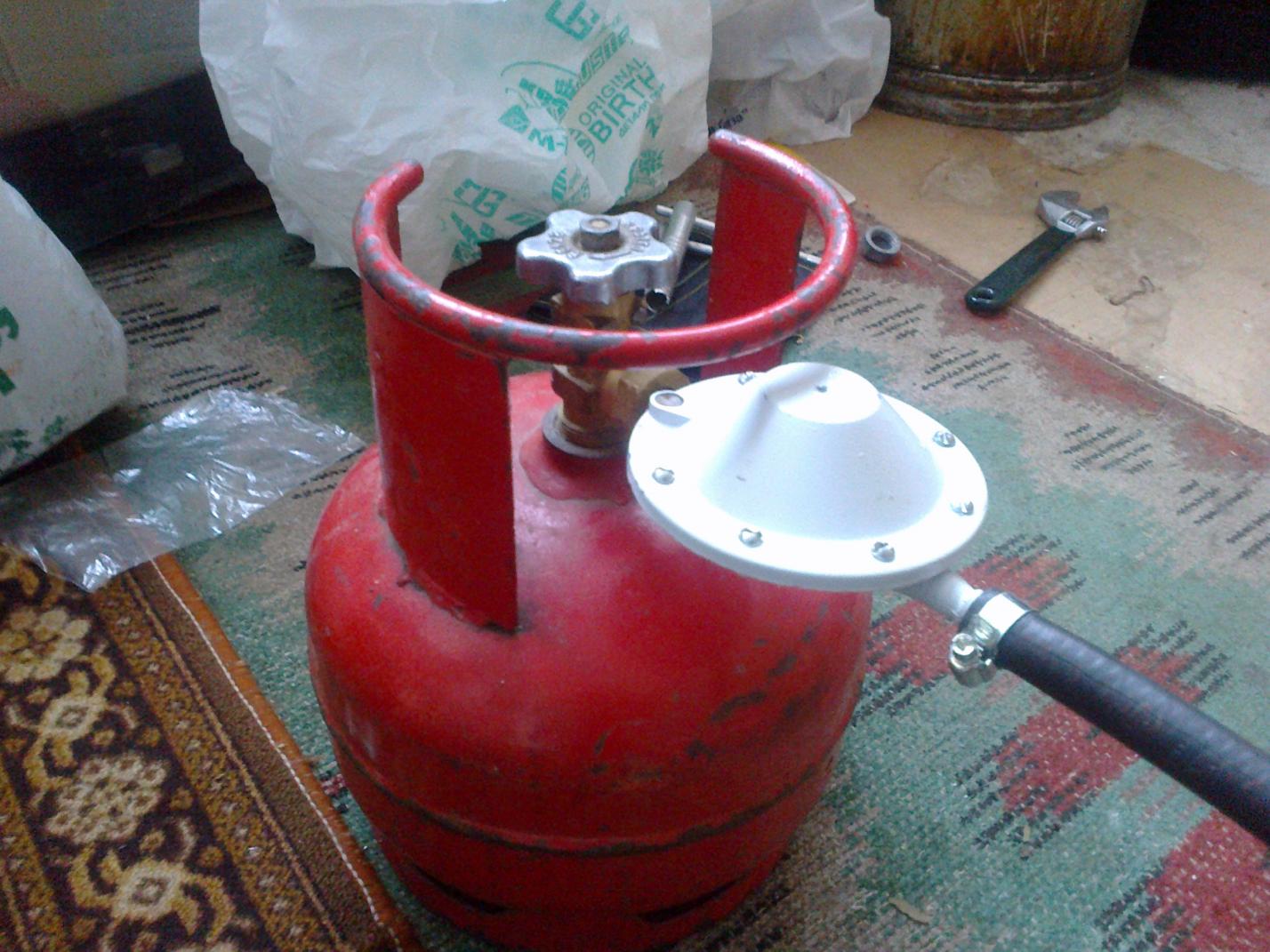 Врежь в подводящий шланг, можно сразу же за редуктором, регулятор. Можно подобрать из старой газовой плиты.