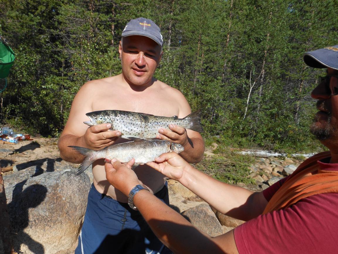 Выехали из Петрозаводска в пять утра , дорога нормальная правда туман но доехали без приключений за два с половиной часа . Оставили машины в деревне под охраной и на казанке перебрались на острова . Рыбу начали ловить сразу на моторе на малом ходу опустили блесна в воду результат ноль. Но эхалот на глубине 40 - 50 метров был просто забит рыбой при общей глубине более 100 метров. решили искать луды результат сразу окуней на уху и щука . Вечером ходили собирать изумруды в Петровский разрез потом баня , короче отдых . На следующий день прямо с острова несколько сходов лосося крупный примерно пять кг лосось брал на колебалку окуней ловили а тут он цап . В конце все т аки поймали пять штук фотка двух прилагается , закоптили и под водку да под песни так хорошо . Один минус аккамулятор на фотике сел с.... а так здорово. Последняя поездка моя как туриста. ))))) ище на острове живет лосиха с лосенком егеря говорят )