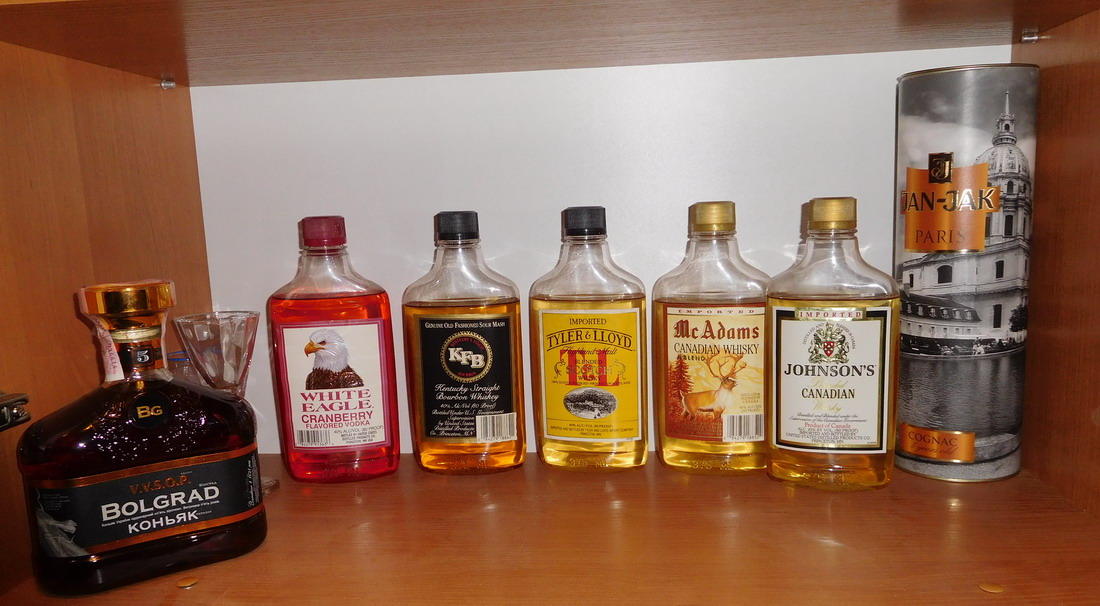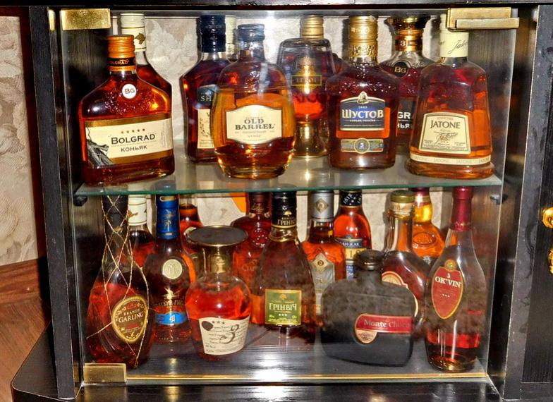 ID:	3836283 пару неплохих украинских коньячных брендов и ностальгическая коллекция канадского виски и американской водки от 1994 года. Часть уже испарилась, сквозь пробки.