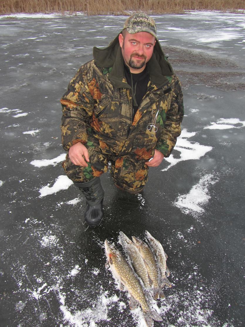 Извините за запоздалый отчёт. Толщина льда 8-10 см. в четверг. Выставились в 16 00,до темна было 2 поклёвки-один обрез,одна гр.500 поплыла подростать. В пятницу было поклёвок 25.Поймали 3 шт до 1 кг. Остальные обрезала. Со мной такое в первый раз.Всегда ловлю без поводков. Решил поменять всю леску. Так как спешил и не было выбора,то поставил 0,35 jaguana-оказалась полное г...но.Щука резала её за каждым разом. Так,что к выбору последней нужно относится не порспи....ски как Я. Или ставить поводки (спорный вопрос).